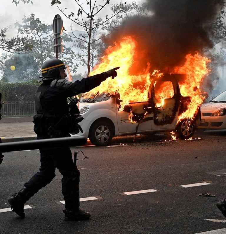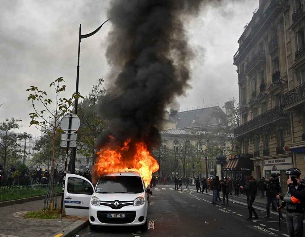 Ateşe verilen araçların arasında Paris Belediyesinin aracı da bulunuyor.