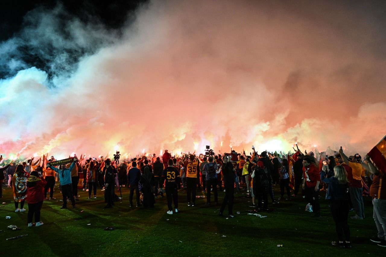 Uzun süre tesis dışında bekleyen taraftarlar, ilerleyen saatlerde içeri alındı. A takımın antrenman yaptığı sahaya alınan taraftarlar, kutlamalarına burada devam etti.