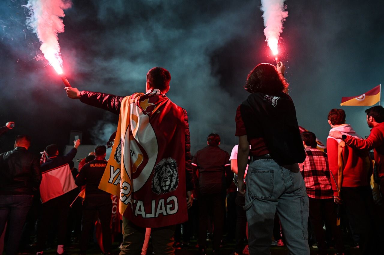Başkentteki maçın öncesinde Florya Metin Oktay Tesisleri'nin önünde toplanmaya başlayan Galatasaraylı taraftarlar, meşaleler yakıp tezahüratlar ve şarkılar söyledi.