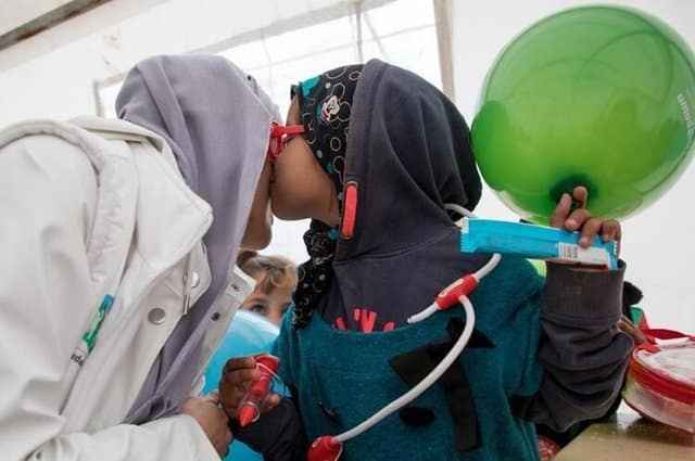 İdlib'teki çadır kentleri ziyaret eden Özçelik, çocuklarla yakından ilgilendi.