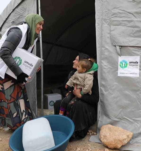 Oyunculuğu bıraktıktan sonra Umuda Koşanlar Derneğini kuran Gamze Özçelik, İdlib'e gitti.