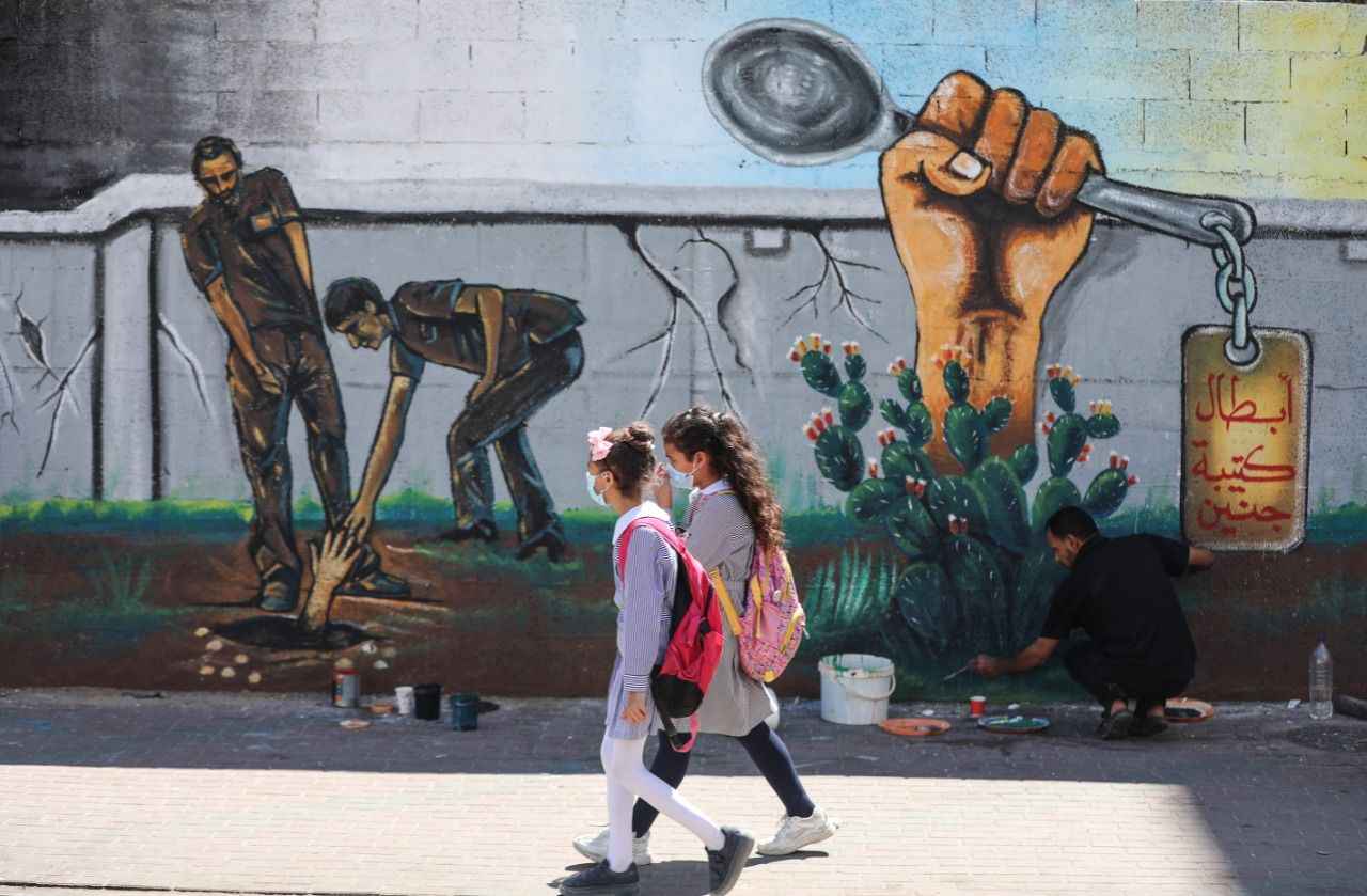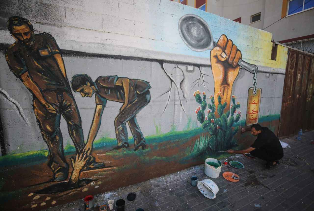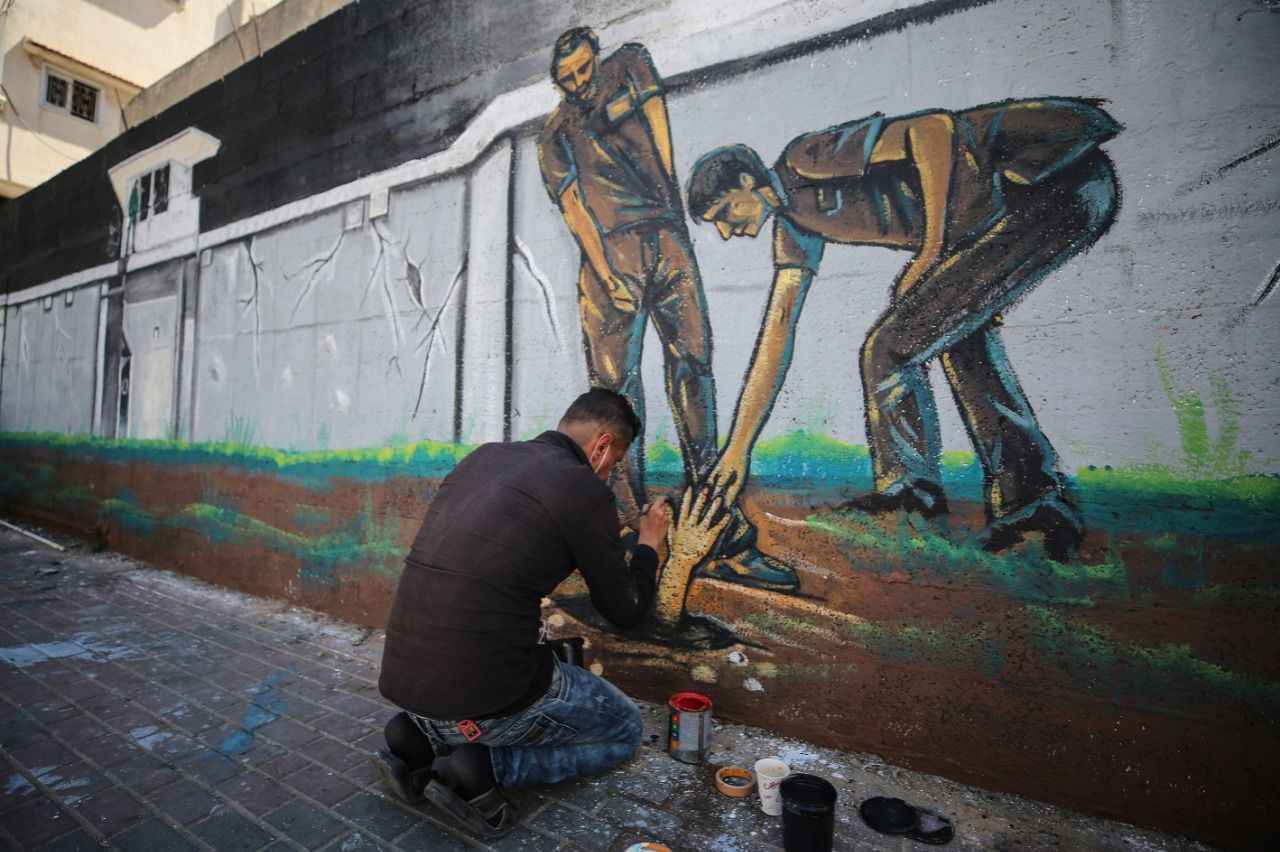 Gazze'deki İslami Cihad Hareketi'nin davetiyle hapishaneden kaçan mahkumların yüzünün çizildiği resimlerin yapıldığı duvarın toplam uzunluğu 40, eni ise 3 metreyi buluyor.