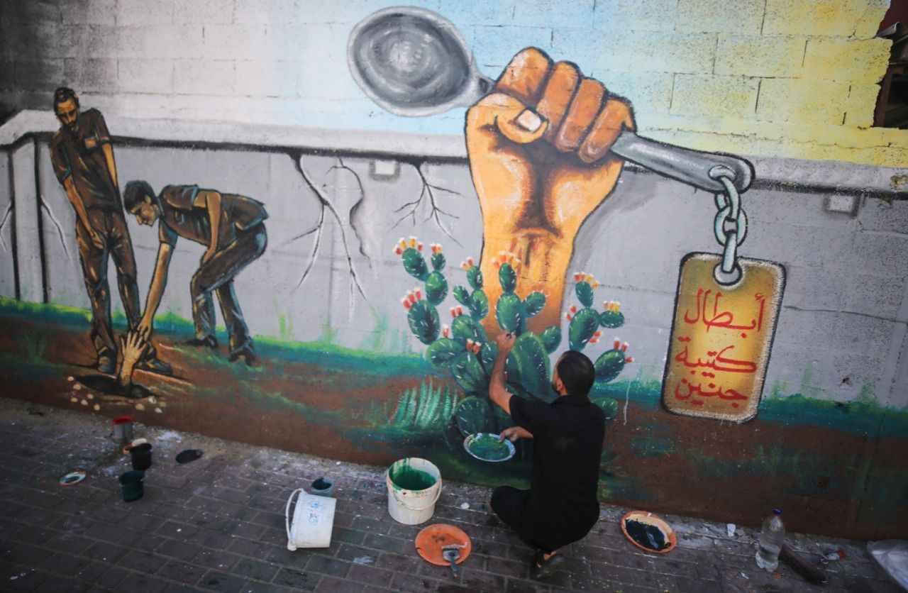 Gazze Şeridi'nde ressamlar, 6 Eylül'de İsrail hapishanelerinden kaçan 6 Filistinliye destek olmak amacıyla duvar resimleri çizdi.