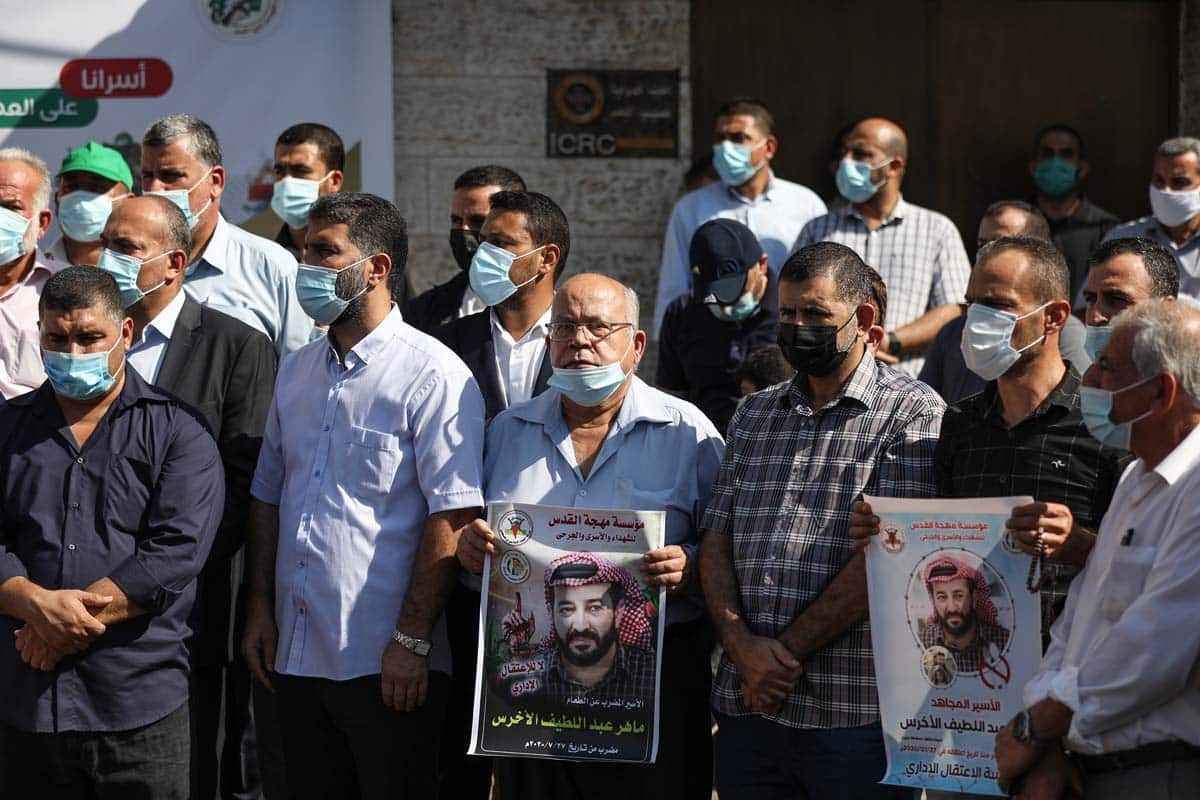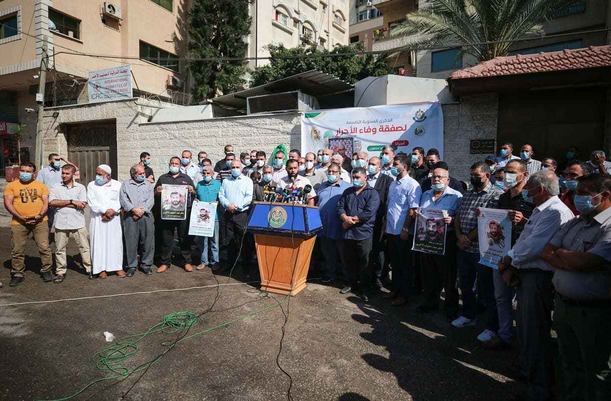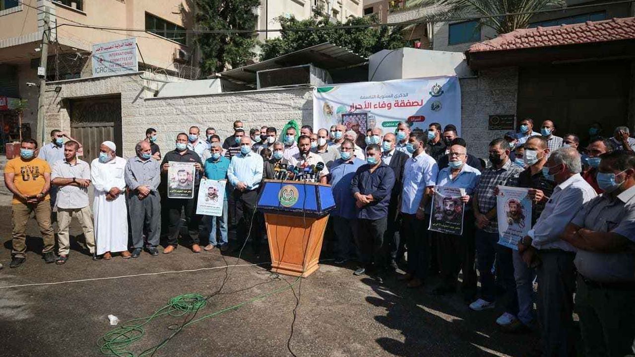 Hamas hareketinin çağrısıyla, 2011'de yapılan esir takasının 9. yıl dönümünde Uluslararası Kızılhaç Komitesi önünde bir araya gelen göstericiler, İsrail hapishanelerindeki Filistinli tutukluların bir an önce serbest bırakılması taleplerinin yazılı olduğu dövizler taşıdı.