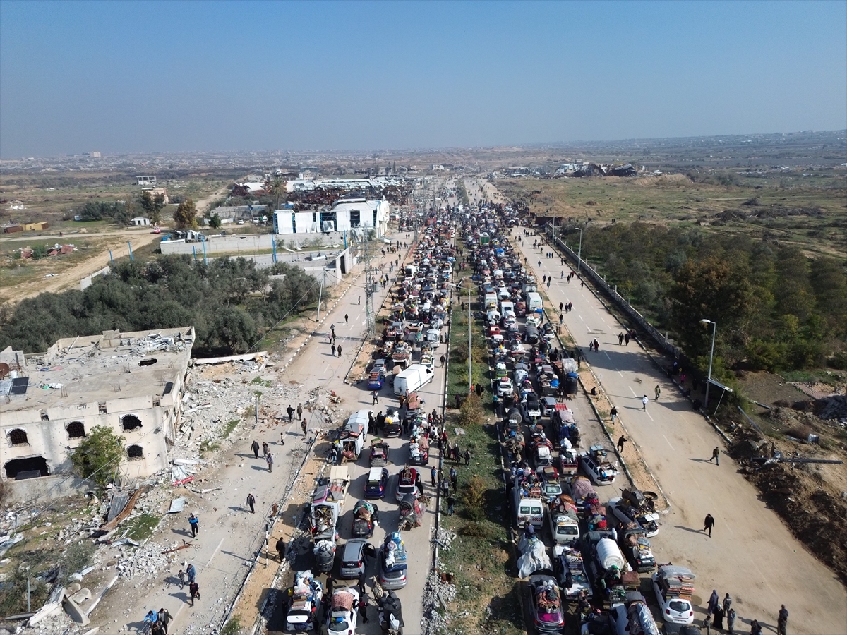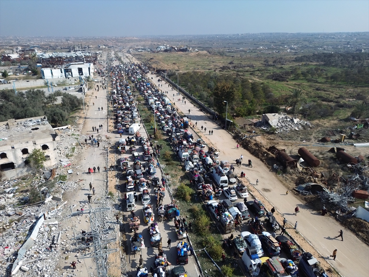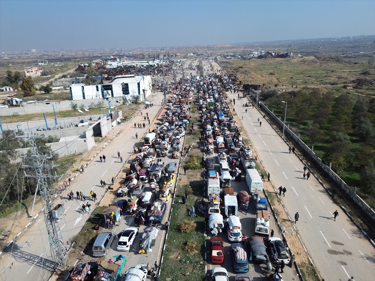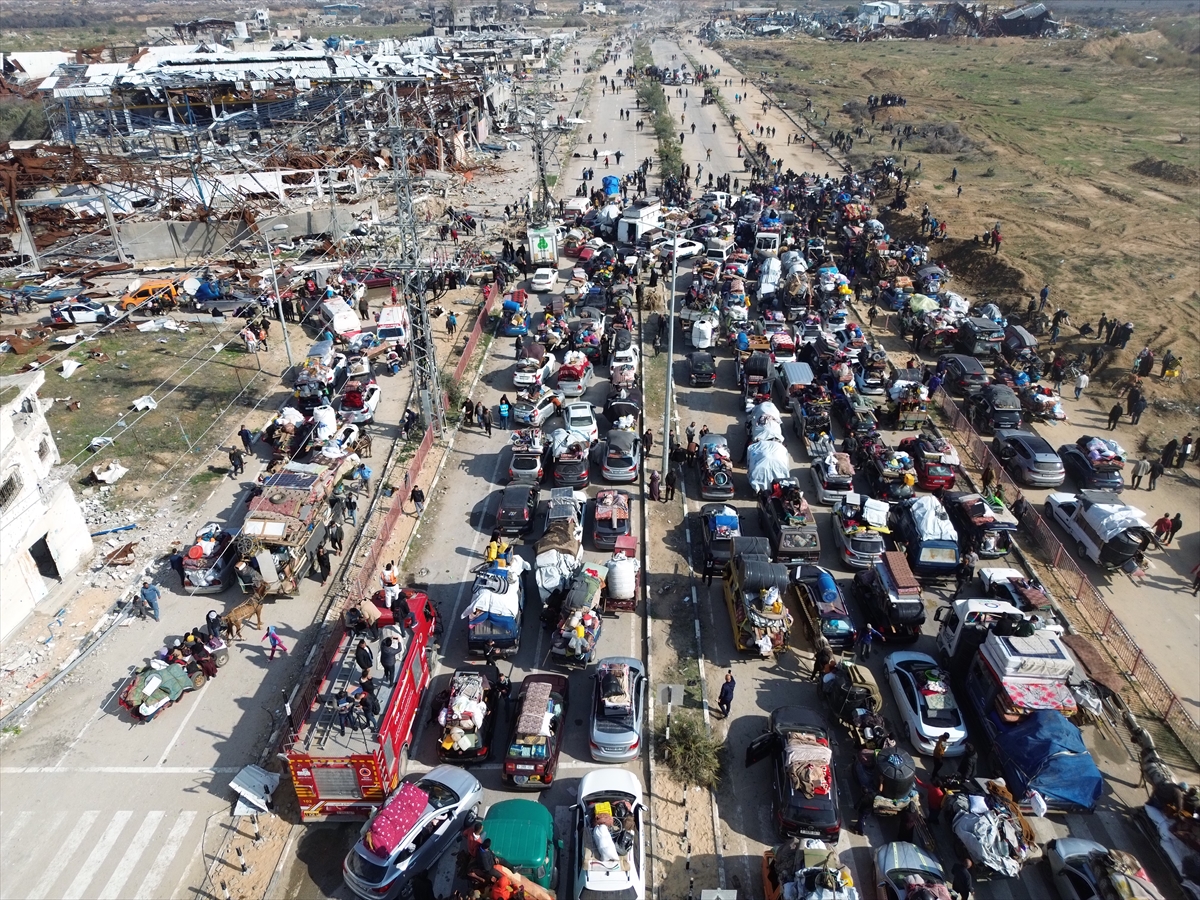 Savaşın harabeye çevirdiği Gazze’de, insanlar araçlarıyla Selahaddin Caddesi üzerinden kuzeye doğru ilerlemeye çalışıyor. Dönüş yolunda kimi X-RAY cihazlarının uzun kuyruklarında bekliyor, kimi yürüyerek ilerlemek zorunda kalıyor. Aileler, çocuklar, yaşlılar...