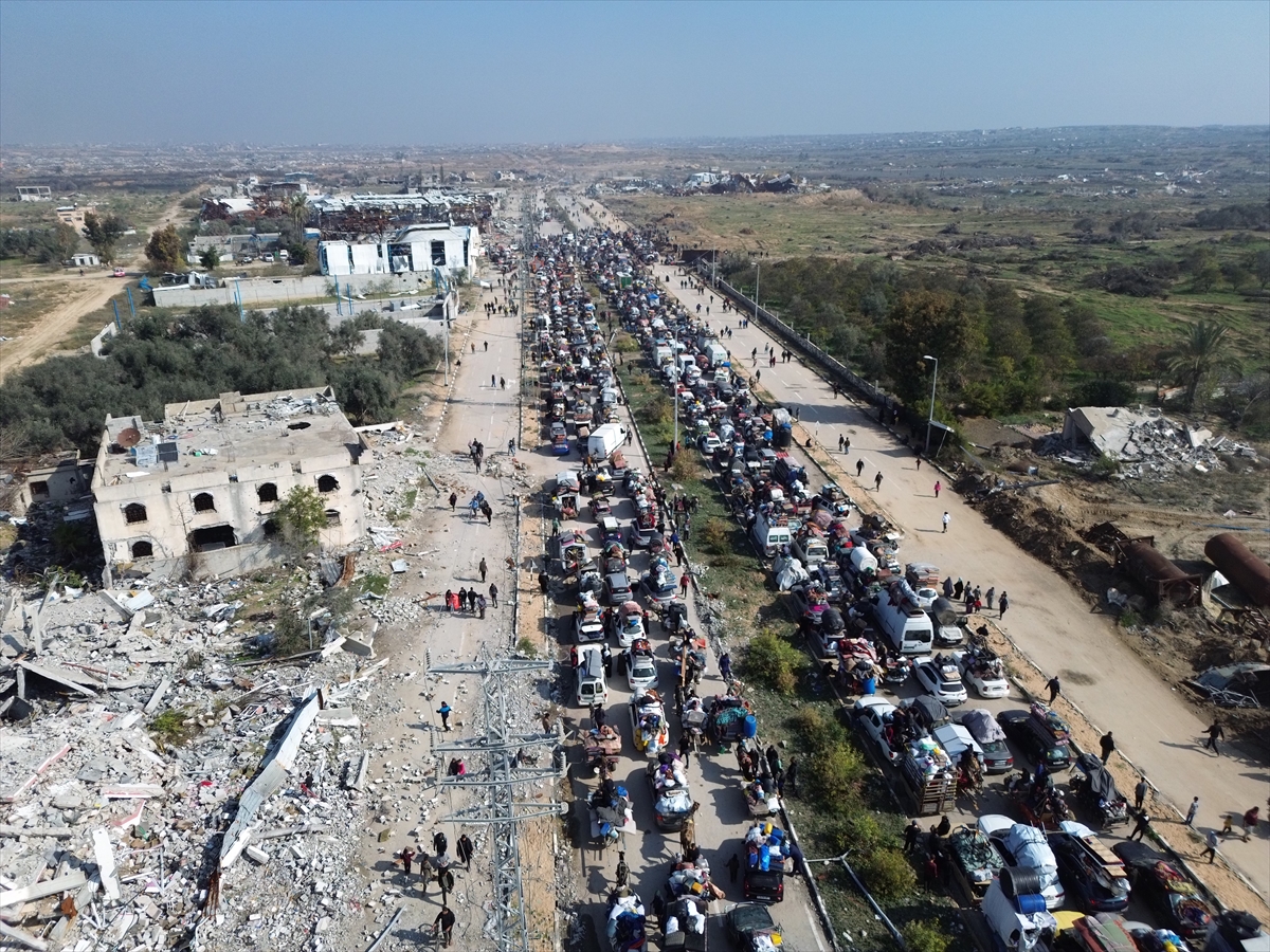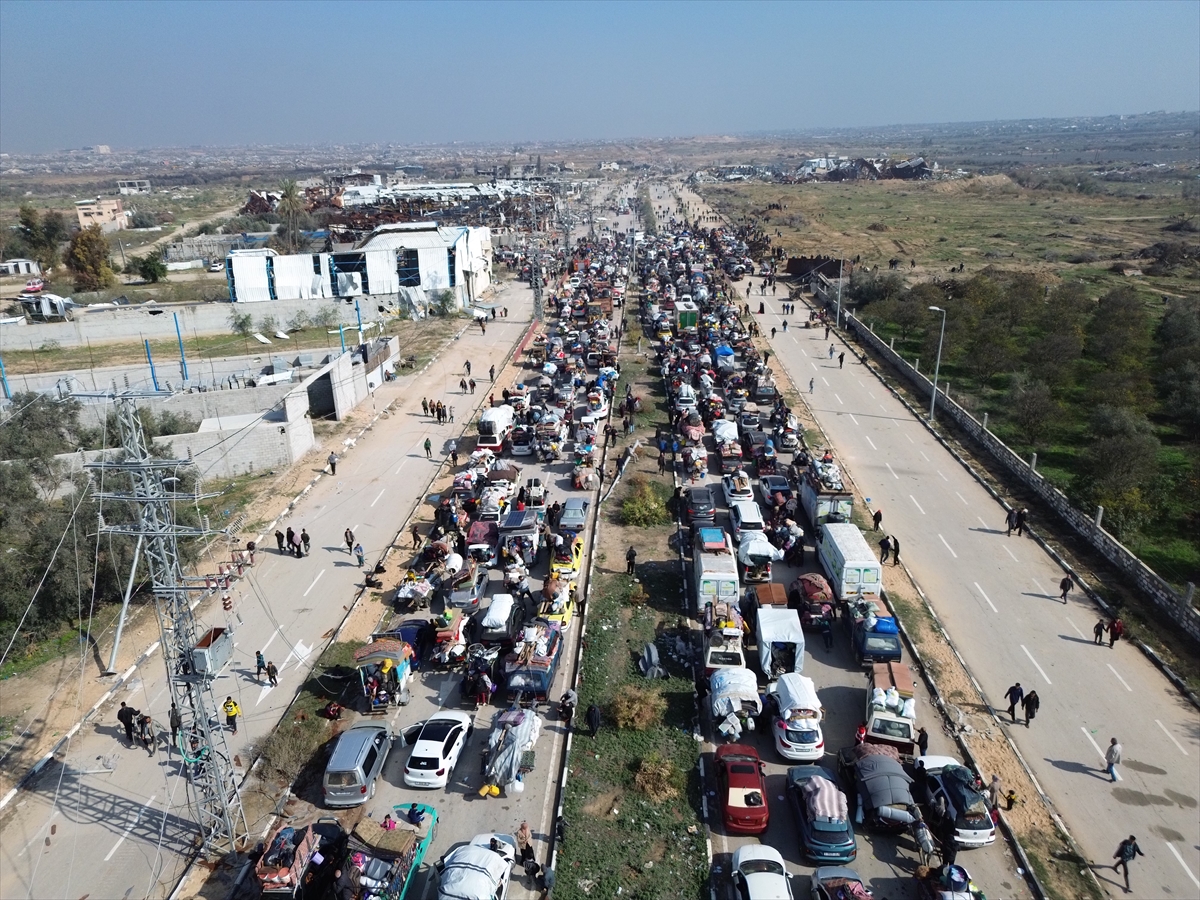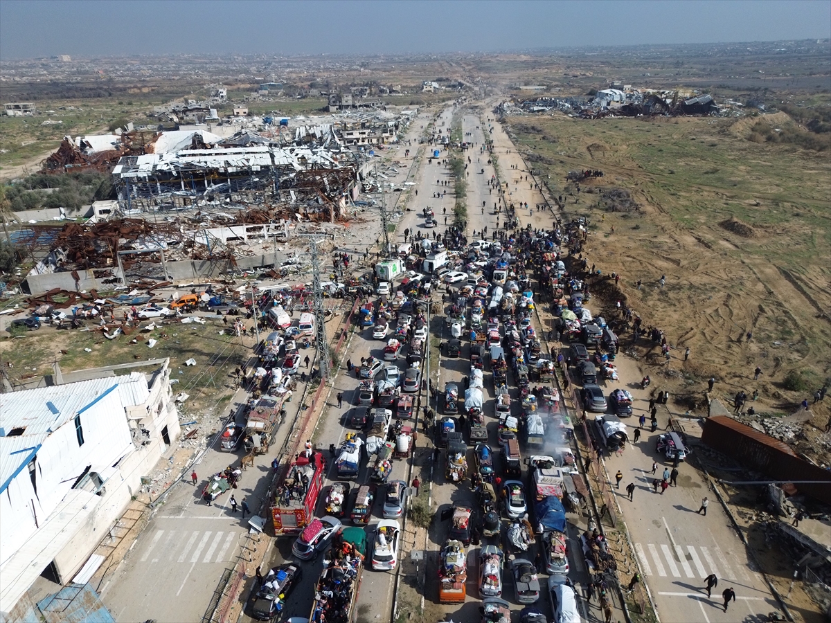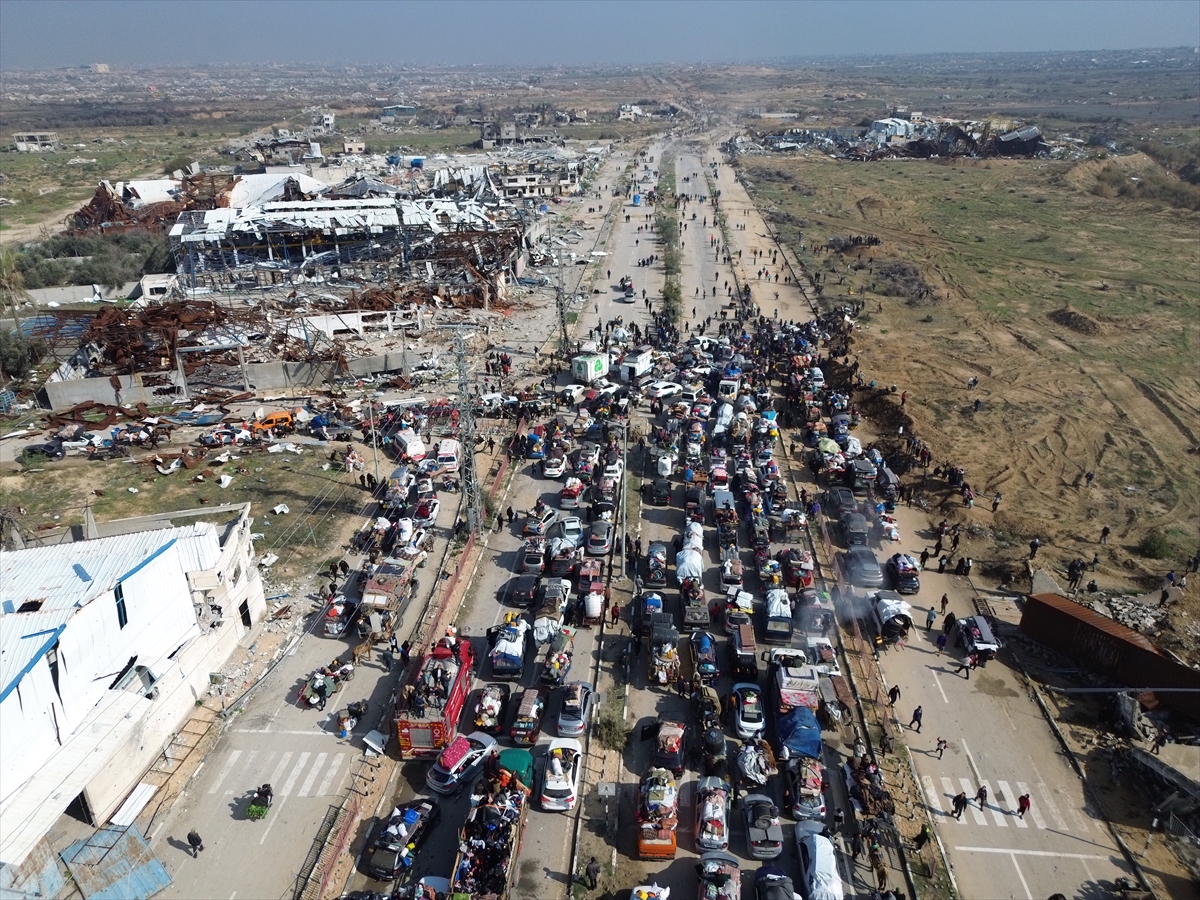 Savaşın harabeye çevirdiği Gazze’de, insanlar araçlarıyla Selahaddin Caddesi üzerinden kuzeye doğru ilerlemeye çalışıyor. Dönüş yolunda kimi X-RAY cihazlarının uzun kuyruklarında bekliyor, kimi yürüyerek ilerlemek zorunda kalıyor. Aileler, çocuklar, yaşlılar...
