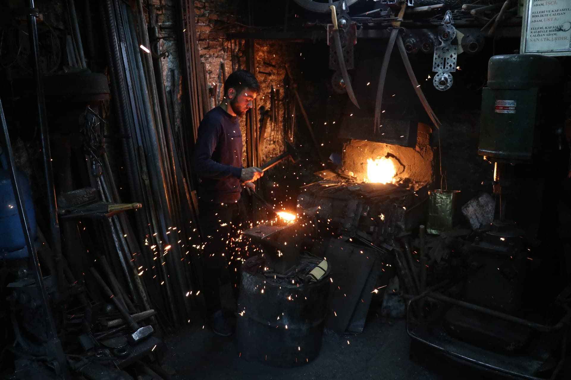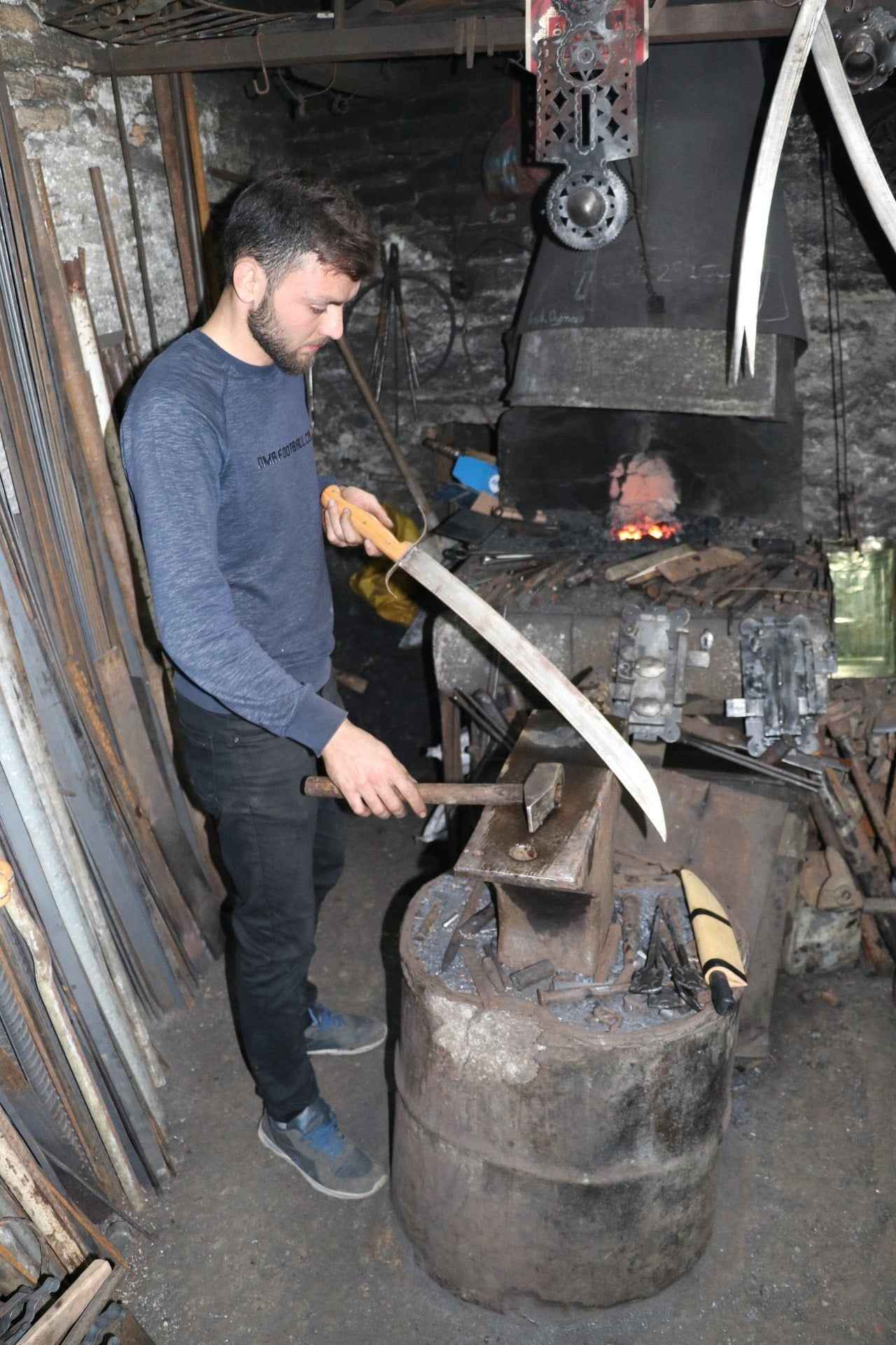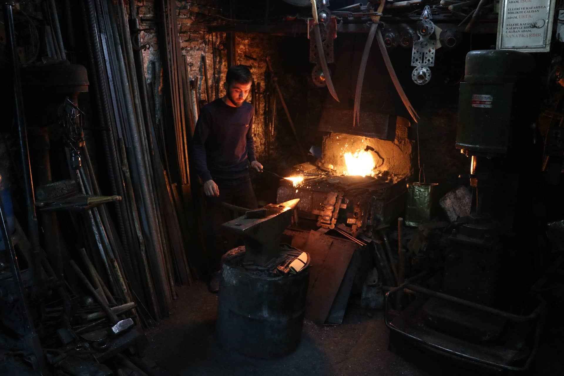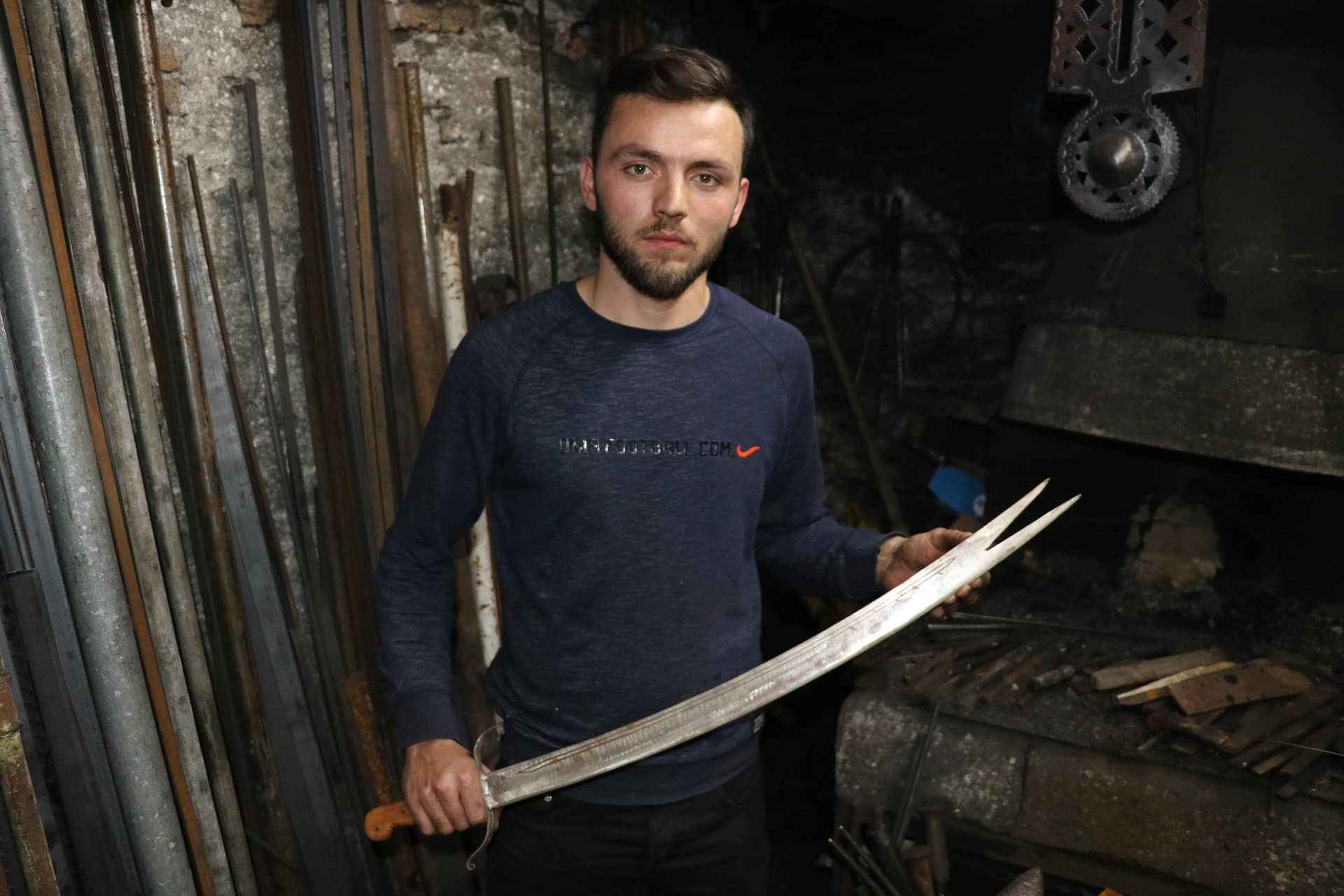 Karabük'ün Safranbolu ilçesindeki Demirciler Çarşısı'nda, unutulmaya yüz tutan kılıç yapımı, sayıları giderek azalan ustalardan 26 yaşındaki Ali Osman Ünal tarafından sürdürülmeye çalışılıyor.