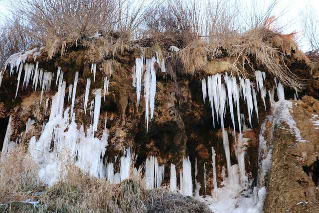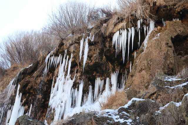 Girlevik Şelalesi'nde uzun buz sarkıtları oluştu