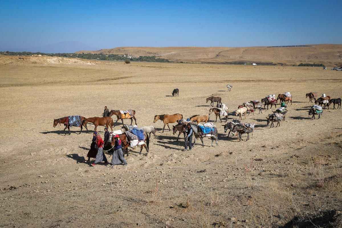 Van'daki geniş ve zengin bitki örtüsüne sahip yaylalarda yaz boyunca hayvanlarını otlatan göçerler, yaklaşan kış mevsimi öncesinde çadırlarını toplayarak, sürüleriyle yola koyuluyor.