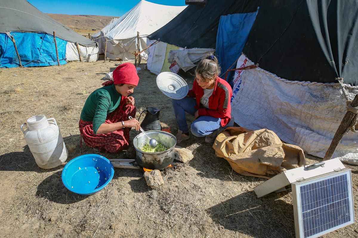 Konakladıkları yerlerde hayvanlarını otlatan, sağdıkları sütle peynir ve tereyağı yapan göçerler, yanlarında taşıdıkları güneş panelleriyle de el fenerlerini şarj ediyor.