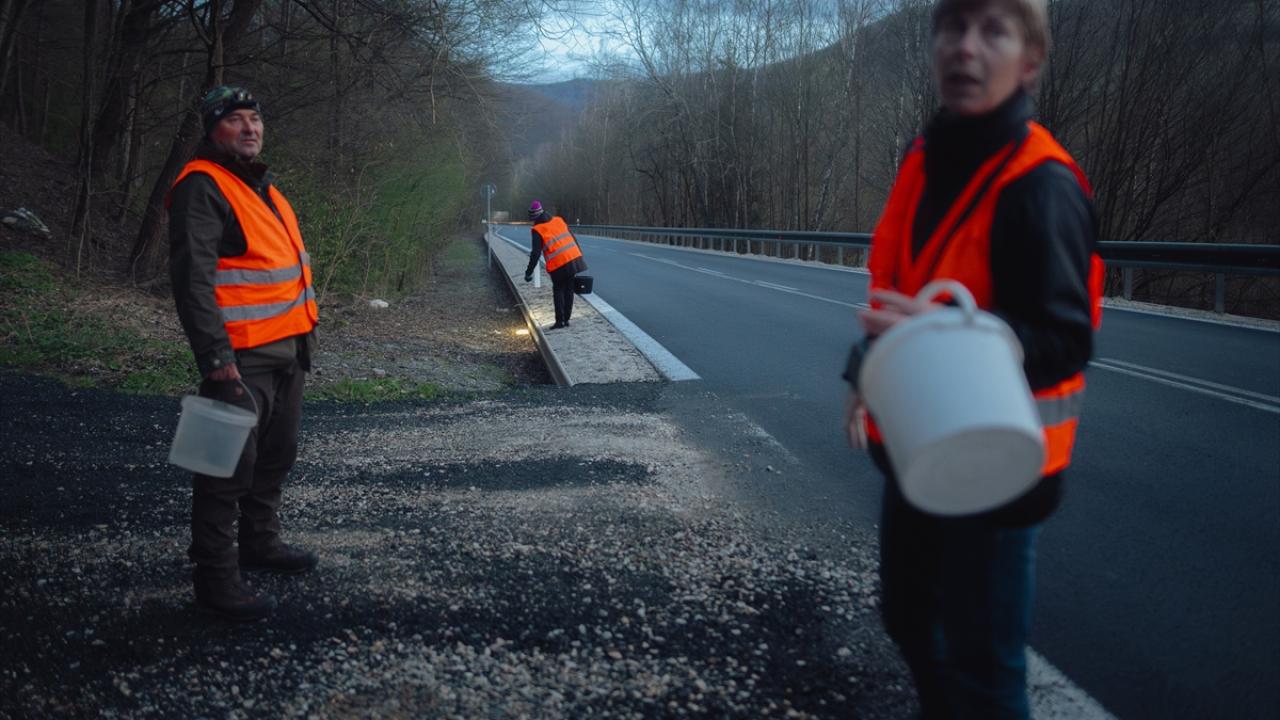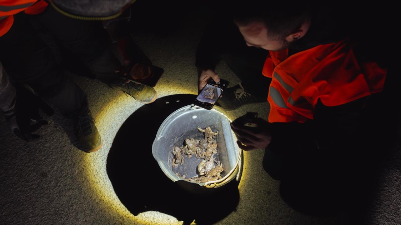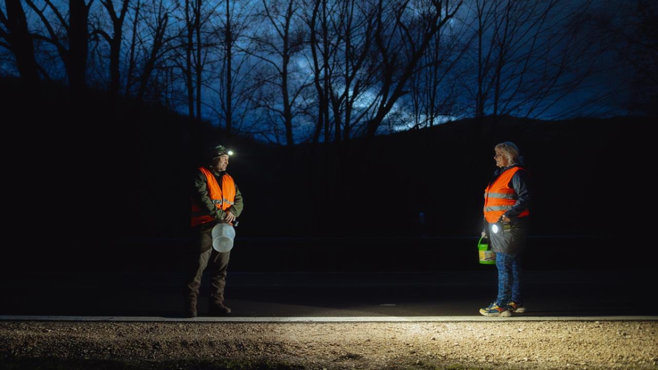 Slovakya'nın Kosice bölgesinde gönüllüler, baharın gelişiyle birlikte üremek için Ruzin barajının yakınındaki sulara göç eden kurbağaların göç yolculukları sırasında işlek yollardan geçmesine yardımcı oluyor.