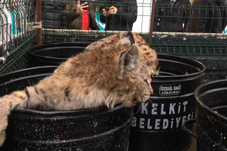 Evin yakınında bulunan bir mobilya mağazasına giren yetişkin vaşak bir süre sonra burada sıkışıp kaldı. Mağaza sahiplerinin haber vermesiyle bölgeye gelen Kelkit Belediyesi Zabıta ekipleri yakaladıkları vaşağı uyuşturucu iğneyle uyuttuktan sonra Doğa Koruma ve Milli Parklar (DKMP) ekiplerine teslim etti.