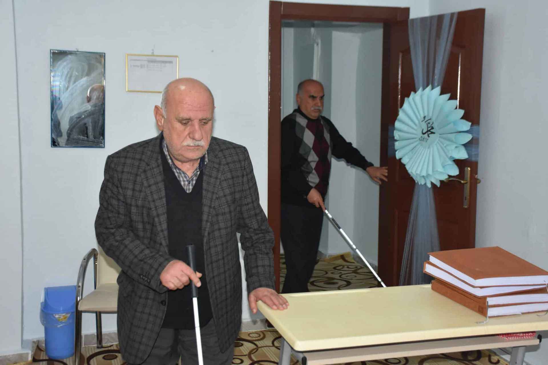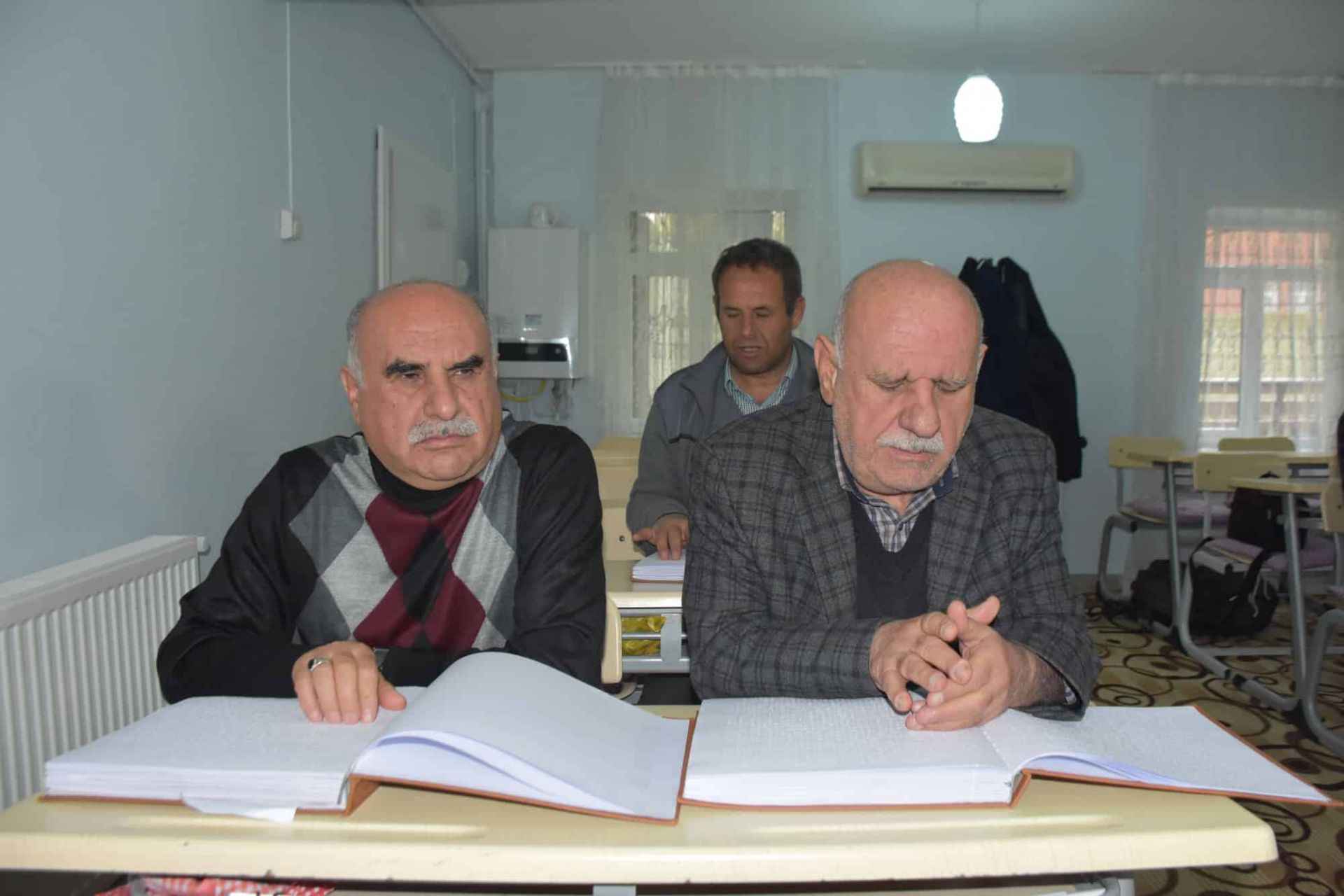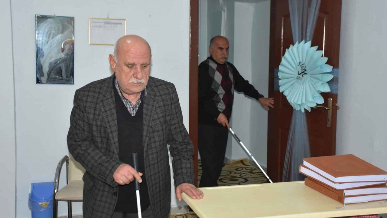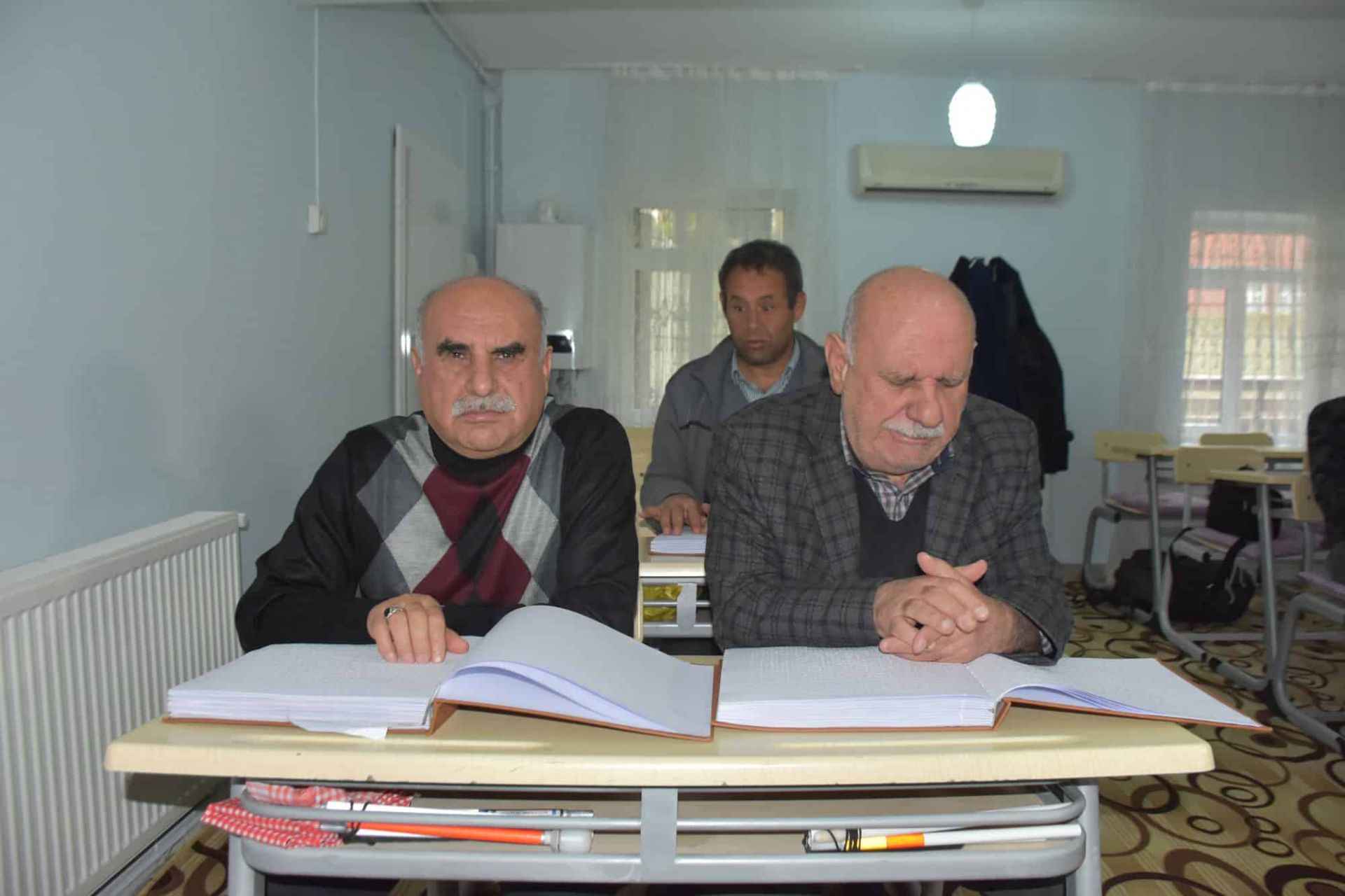 Kent merkezinde yaşayan ve gençlik yıllarında görme yetilerini kaybeden 70 yaşındaki Bahri ve 65 yaşındaki Bayram Tunç, İl Müftülüğüne bağlı Abdullah Bin Ümmü Mektum Görme Engelliler Kur'an Kursuna katıldı.
