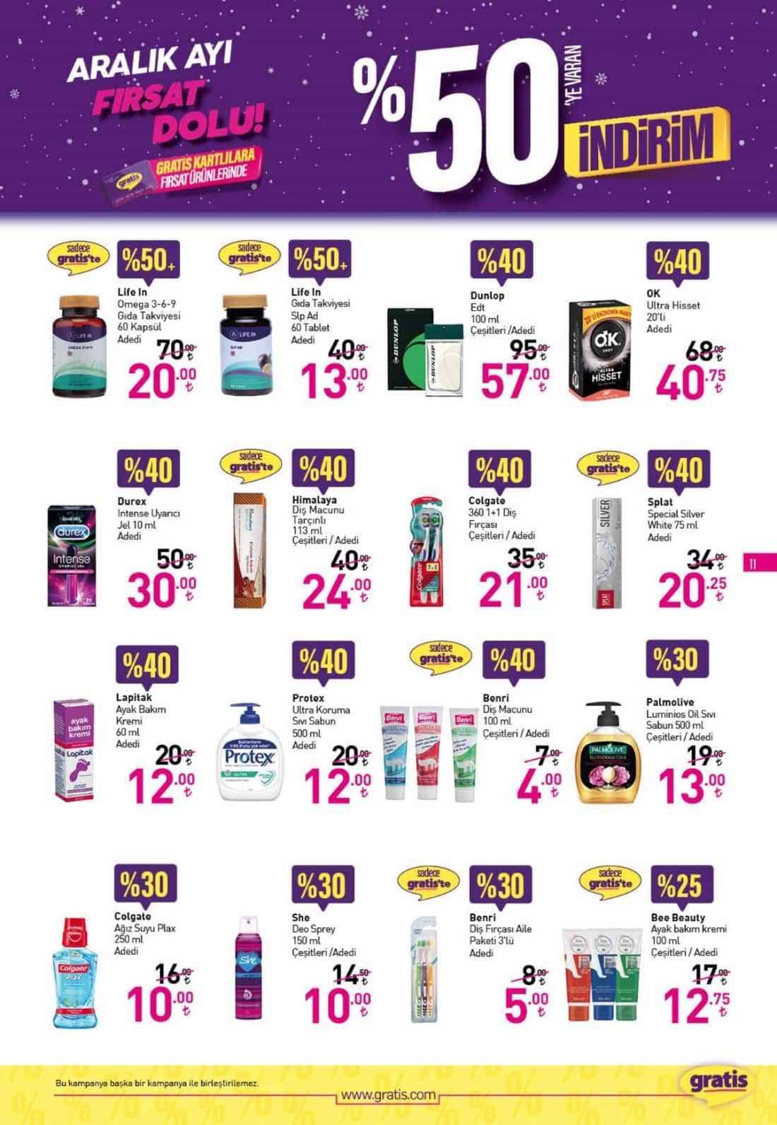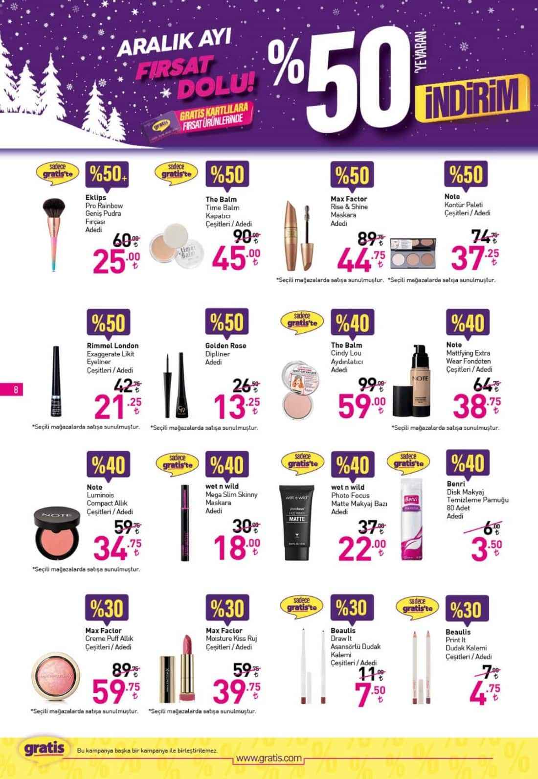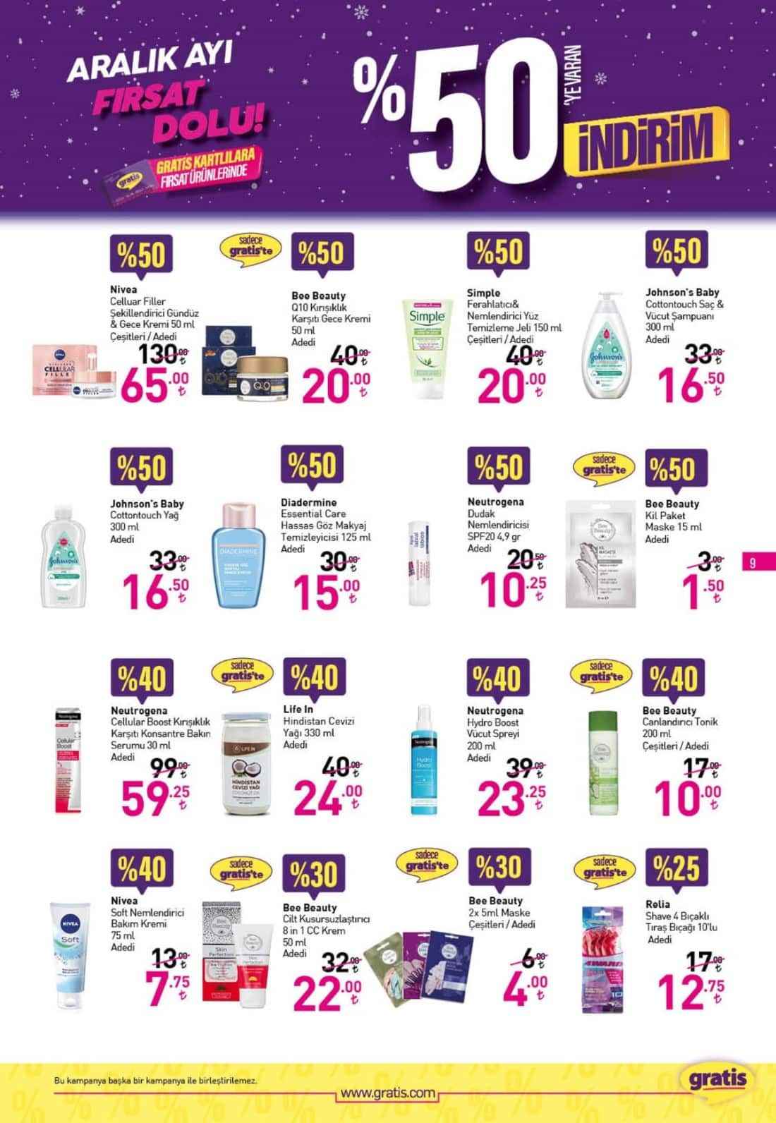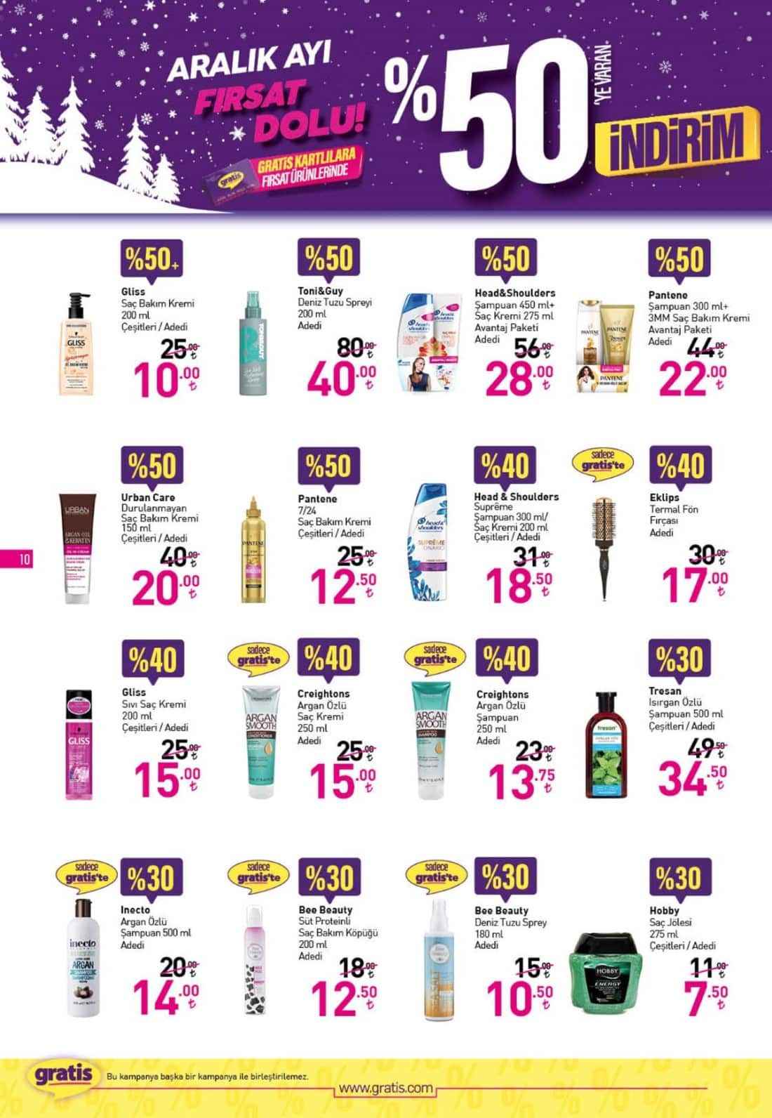 Gratis’in Aralık ayına özel yüzde 50 indirimli ürünlerine yoğun ilgi devam ediyor. Gratis Kart’ı olan vatandaşlar Gratis ürünlerini yüzde 50’ye kadar varan indirimlerle satın alabiliyor. İşte Aralık ayına özel indirimler...
