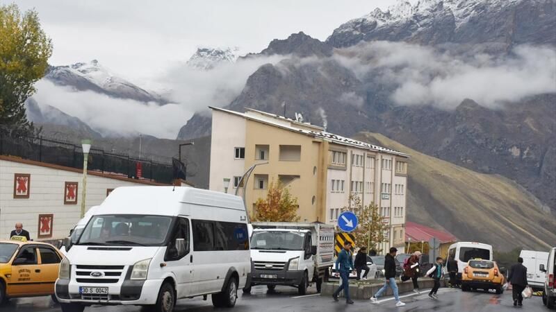 Hakkari'de kent merkezinde etkili olan sağanağın ardından yüksek kesimlere kar yağdı.