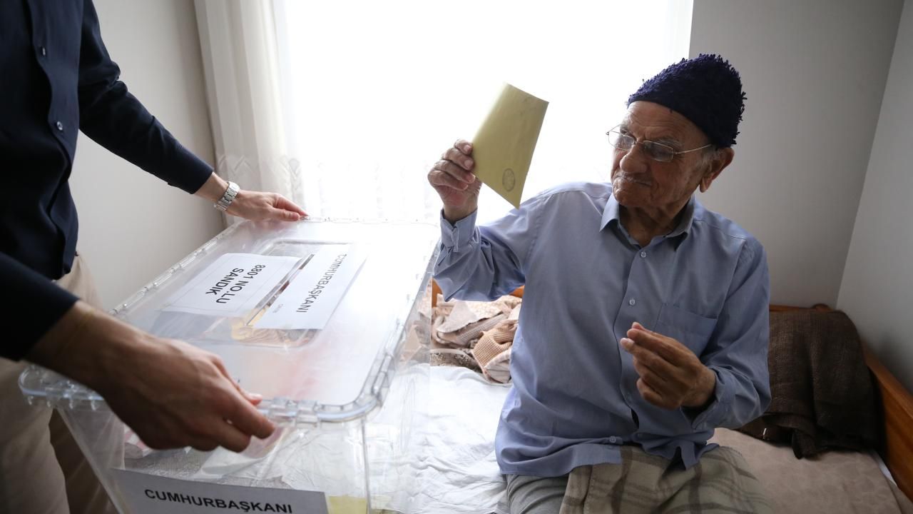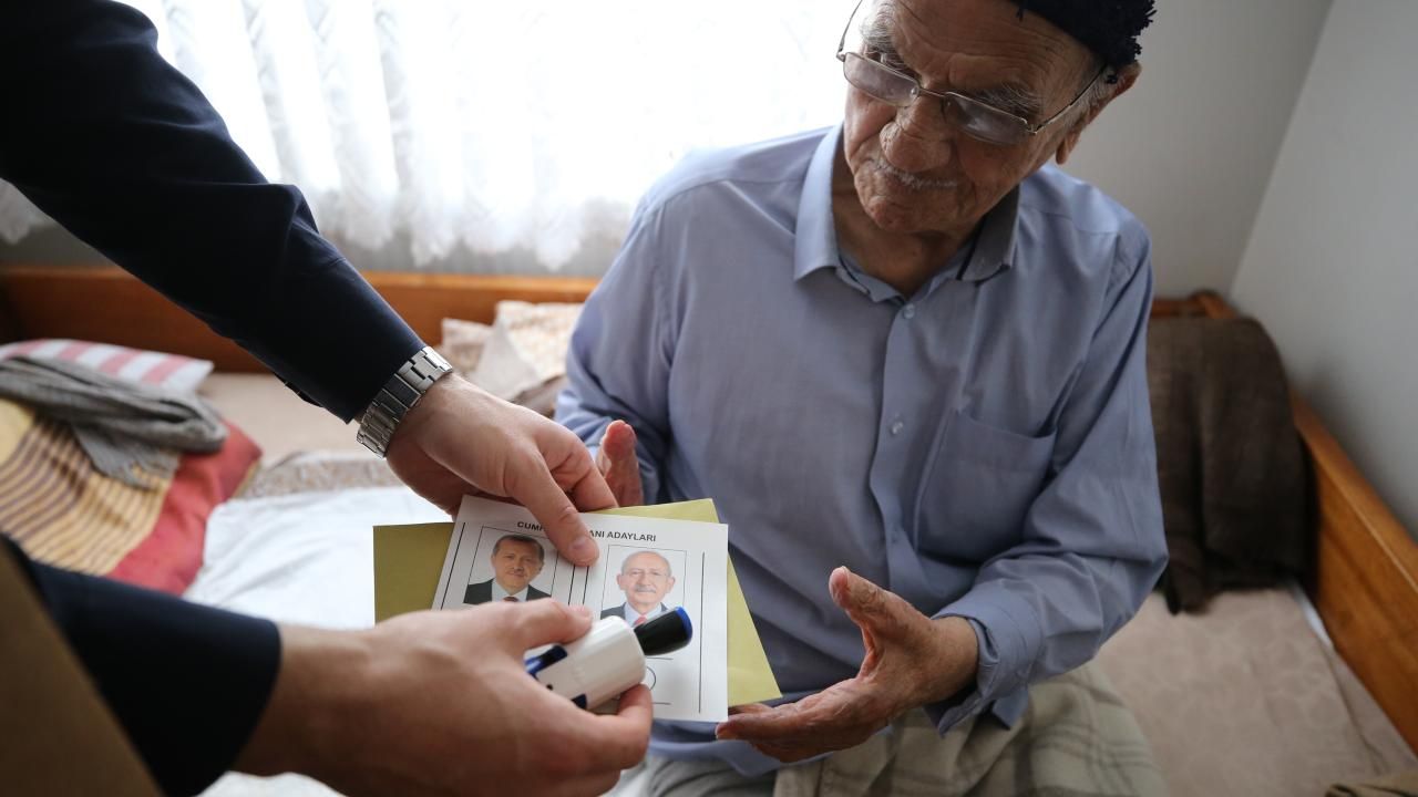 Kırklareli İl Seçim Kurulu görevlileri, Karakaş Mahallesi`nde ikamet eden ve oy kullanmaya gidemeyecek derecede hasta olan 94 yaşındaki Veli Akıncıoğlu`nun evine seyyar sandık götürdü.