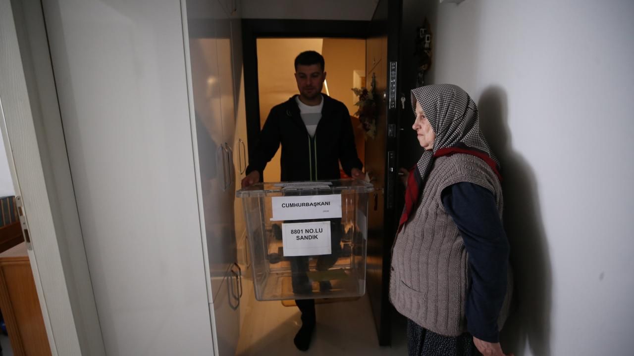 Sandık görevlileri, getirdikleri taşınabilir kabini Akıncıoğlu`nun bulunduğu odaya yerleştirdi ve oy kullanma işlemi hakkında bilgi verdi.