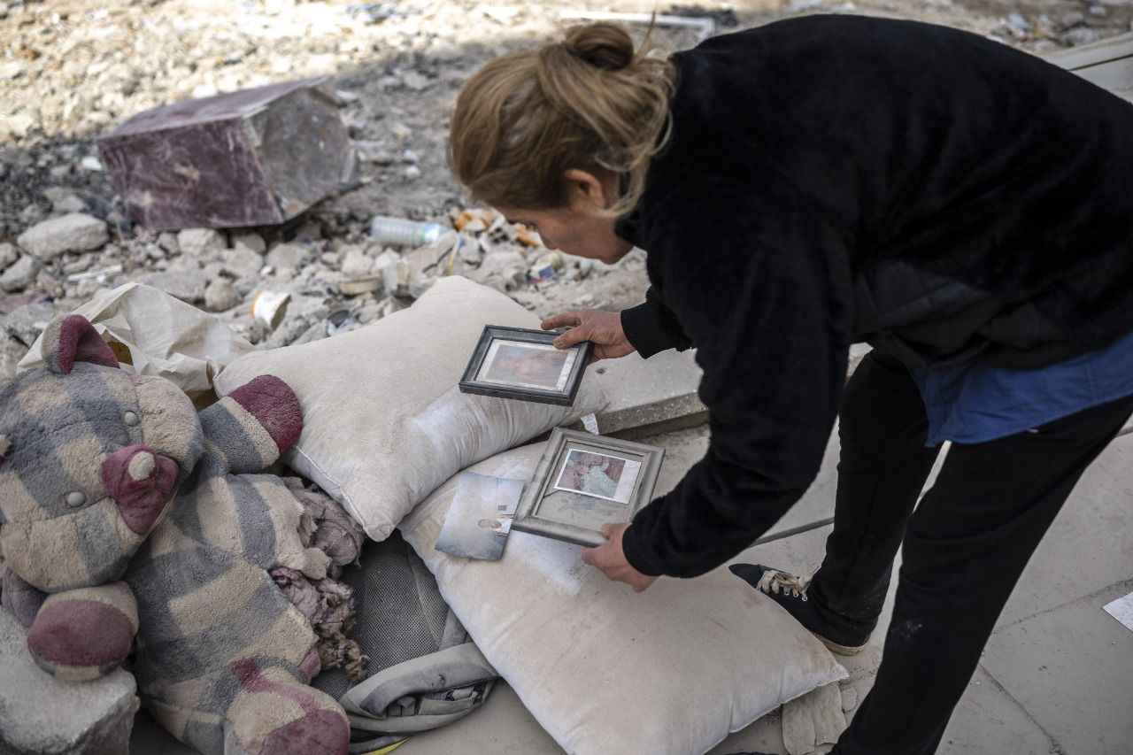 Çalışmaları izleyen bir kadın, yıkıntılar arasında vefat eden yakının fotoğrafını bulunca gözyaşlarına hakim olamadı.