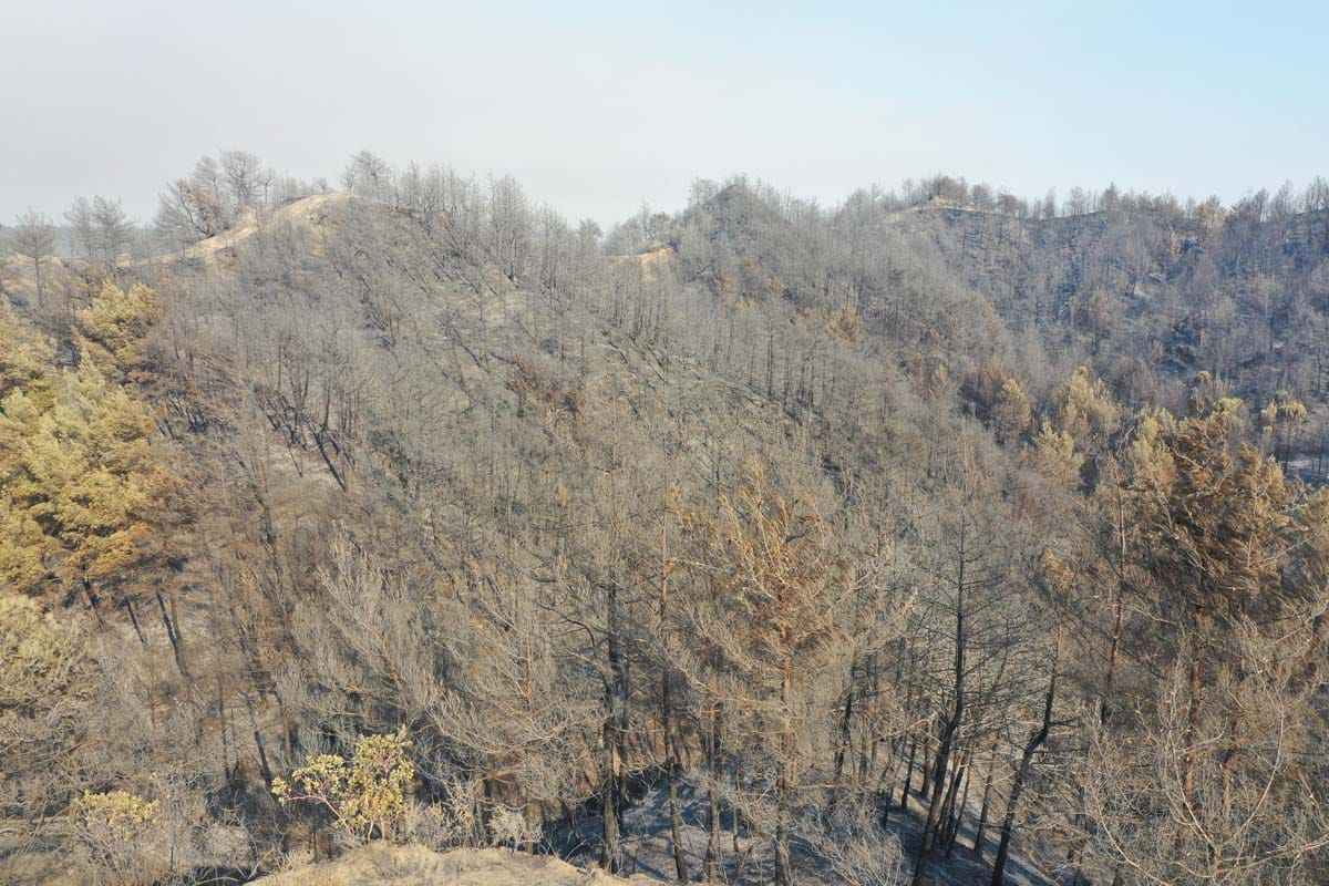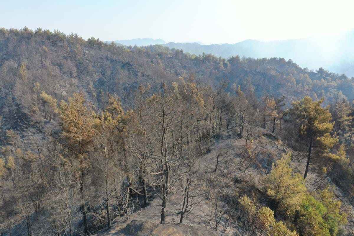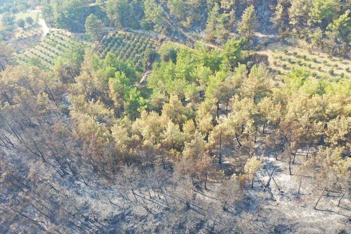 Hatay'ın Samandağ ilçesinde başlayan ve Antakya ilçesine de sıçrayan orman yangını havadan ve karadan müdahale ile kontrol altına alınmaya çalışılıyor. Buna karşın yangın sonrası ortaya çıkan tahribat havadan görüntülendi.