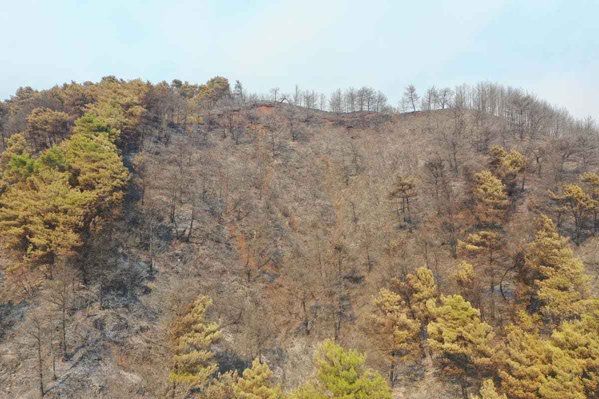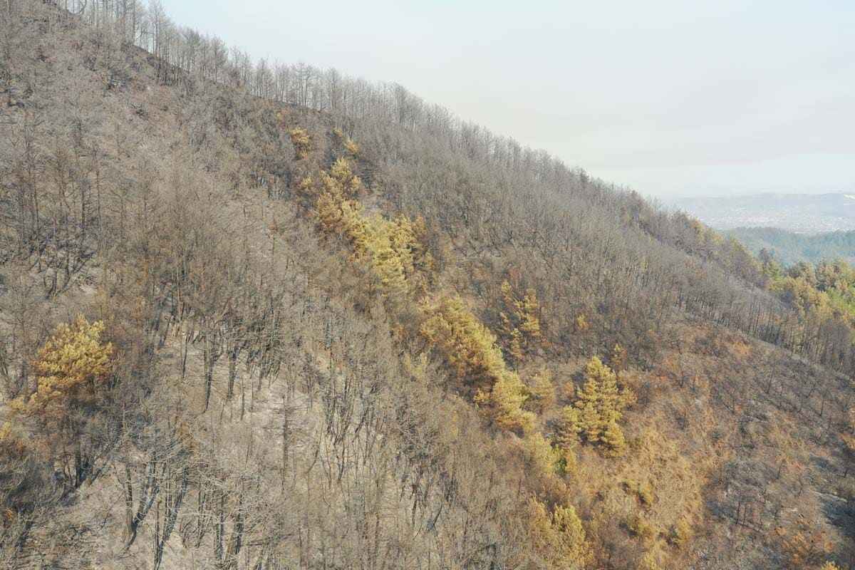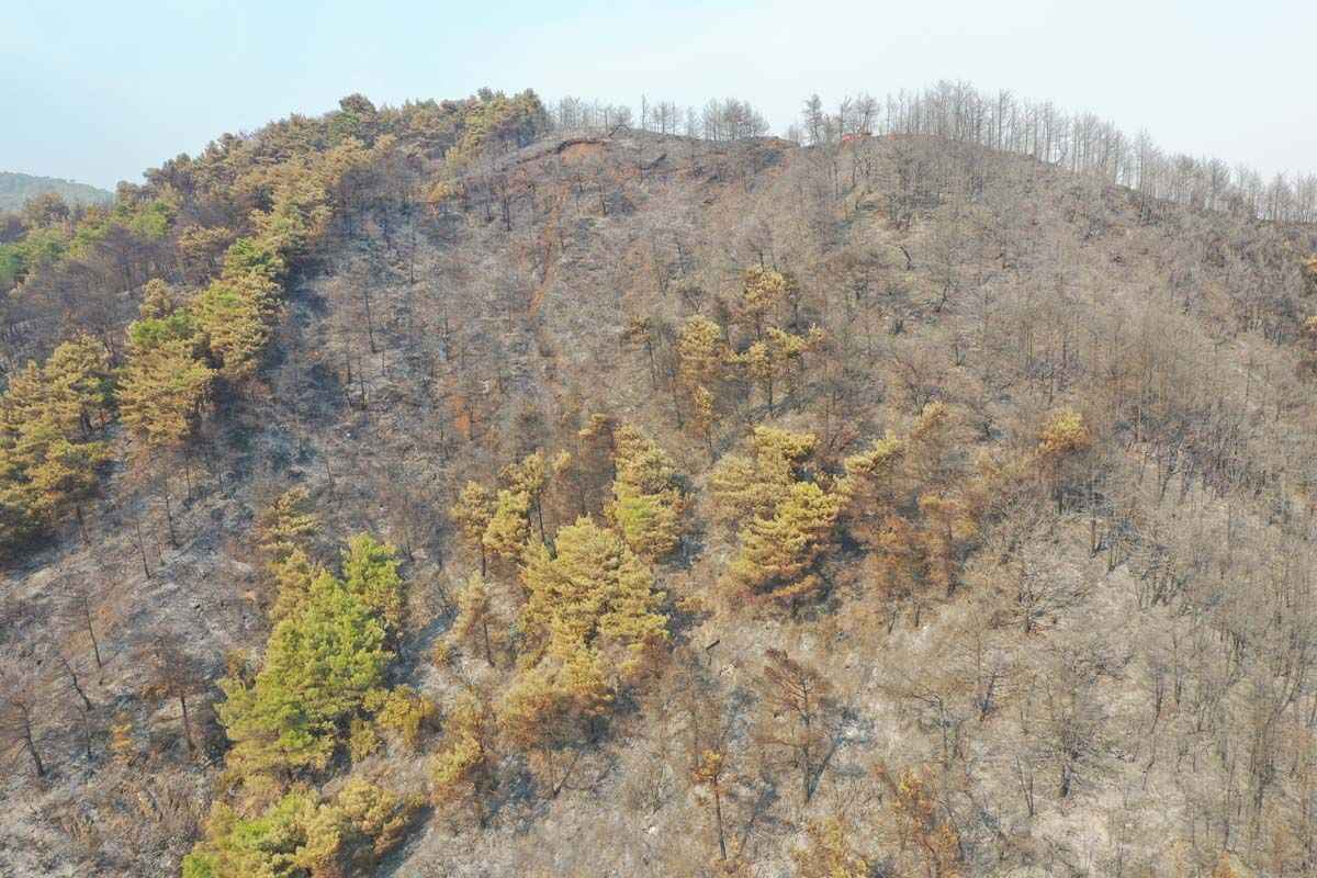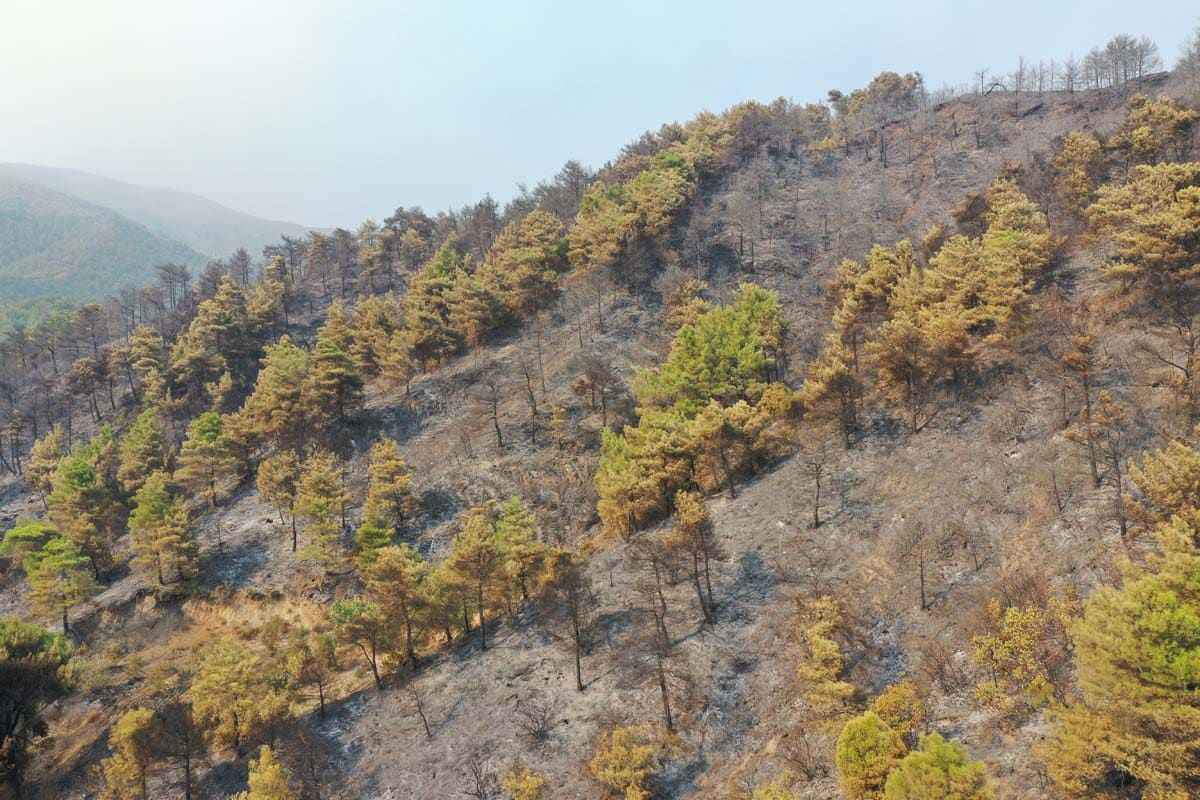 Hatay'ın Samandağ ilçesinde başlayan ve Antakya ilçesine de sıçrayan orman yangını havadan ve karadan müdahale ile kontrol altına alınmaya çalışılıyor. Buna karşın yangın sonrası ortaya çıkan tahribat havadan görüntülendi.