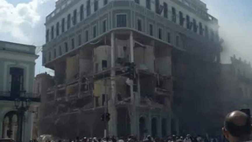 Patlamada otelin büyük bir bölümü zarar görüp çökerken sebebinin ne olduğu henüz belirlenemedi.
