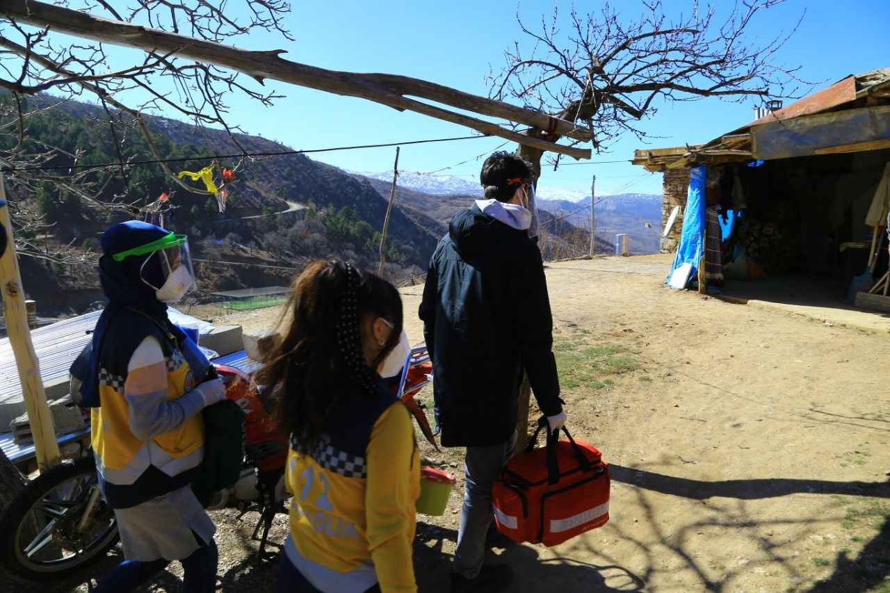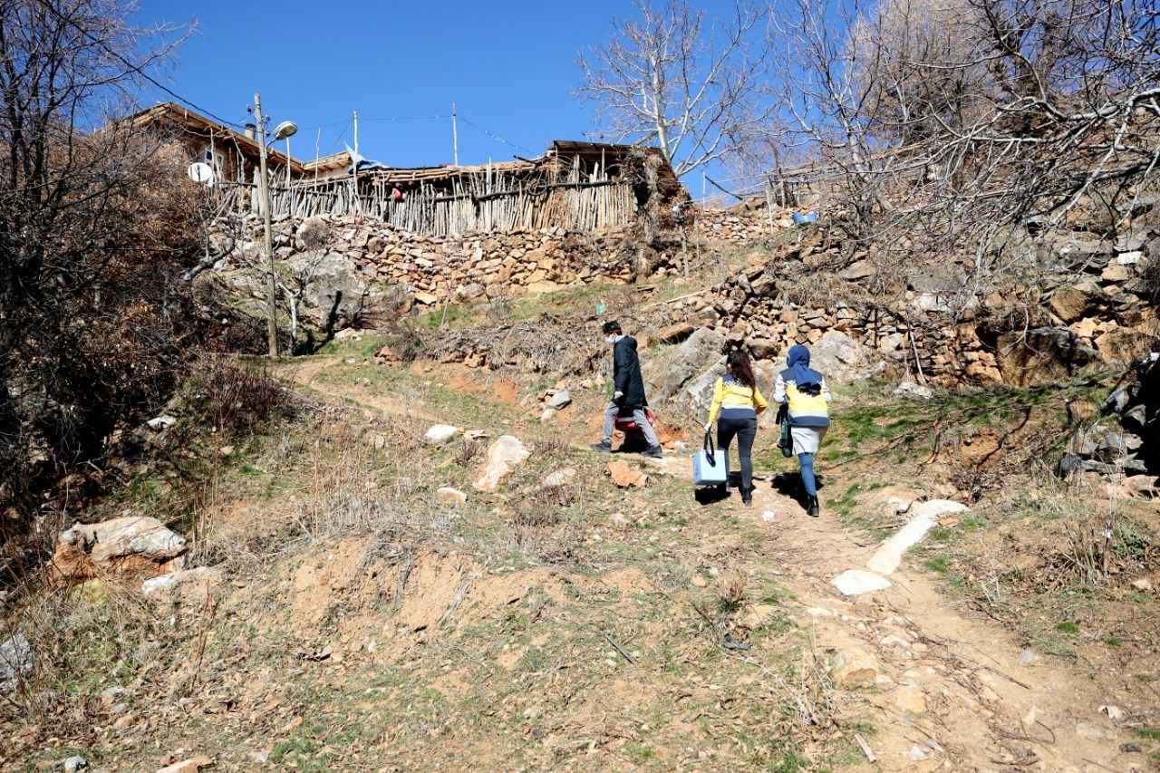 Eskiden bir "dağ köyü" olarak bilinen yüksek rakımlı kırsal mahalleye ulaşmaya çalışan sağlık ekibi, aracın gidemediği 3 kilometrelik patika yolu ise yürüyerek çıktı.
