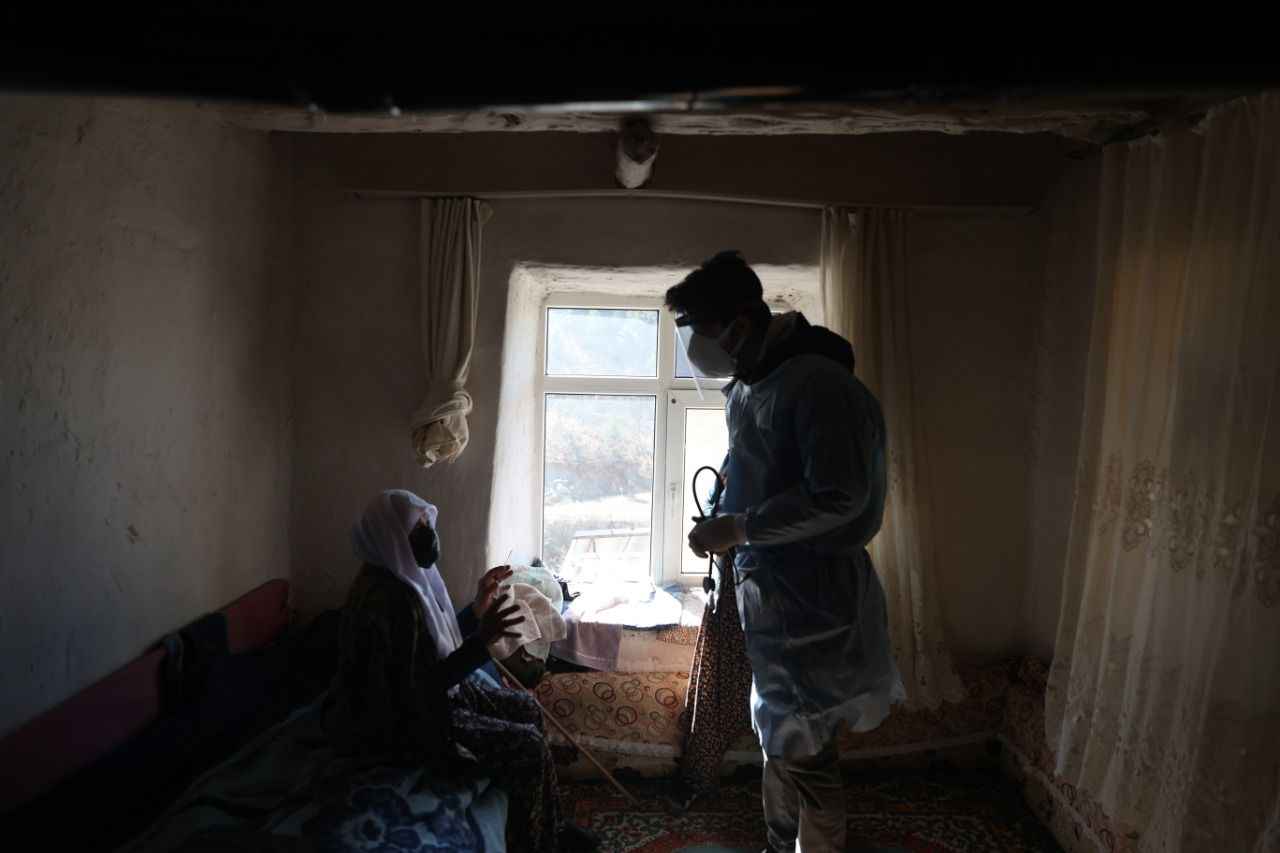 Hayatı boyunca doktora dahi gitmediği öğrenilen ve damadı ile kızıyla aynı evde yaşan yaşlı kadın, binbir türlü güçlükle karşılaşarak evine ulaşan sağlık ekiplerini karşısında görünce duygu dolu anlar yaşadı.