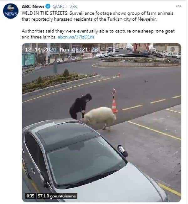 Amerika’da yayın yapan ABC News ise, "Türkiye'nin Nevşehir kentinde bir grup çiftlik hayvanı belediye binasına saldırdı. Yetkililer sonunda bir koyun bir keçi ve üç kuzuyu yakaladı" ifadelerini kullandı.