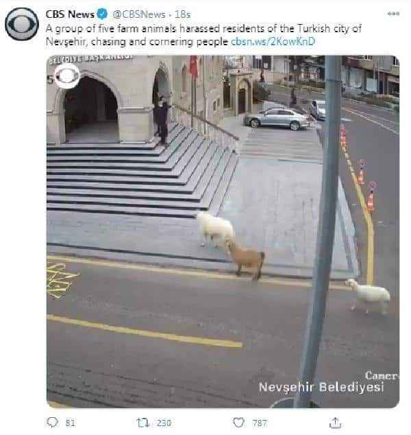 ABD merkezli CBS News Televizyonu da, "5 çiftlik hayvanı, Türkiye'nin Nevşehir kentinde yaşayanları taciz etti, insanları kovalayıp köşeye sıkıştırdı" başlığıyla duyurdu.