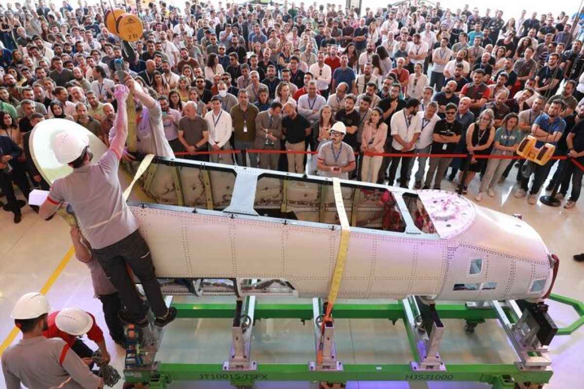 TUSAŞ'tan yapılan yazılı açıklamaya göre, toplamda 8 bine yakın parçadan oluşacak Hürjet projesinin tüm elektronik alanlarının yönetiminin gerçekleştirileceği ön gövde için 350 parça bir araya getirildi.