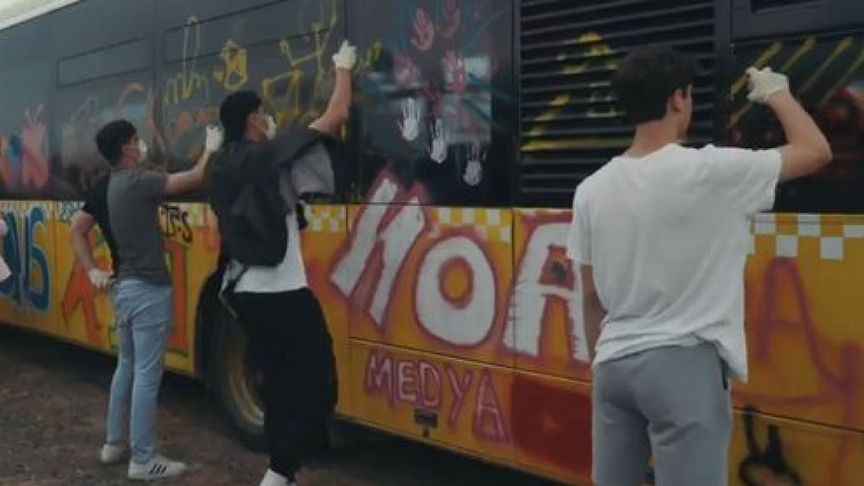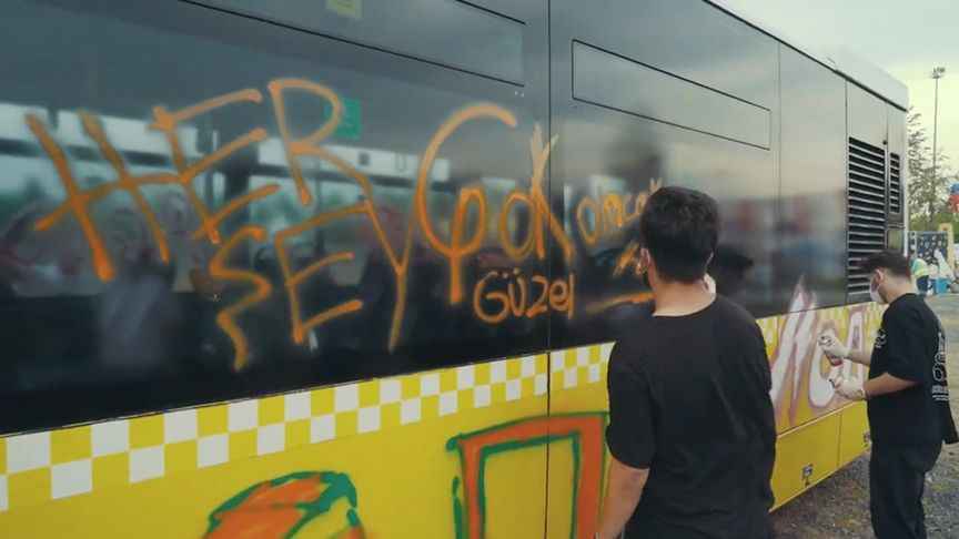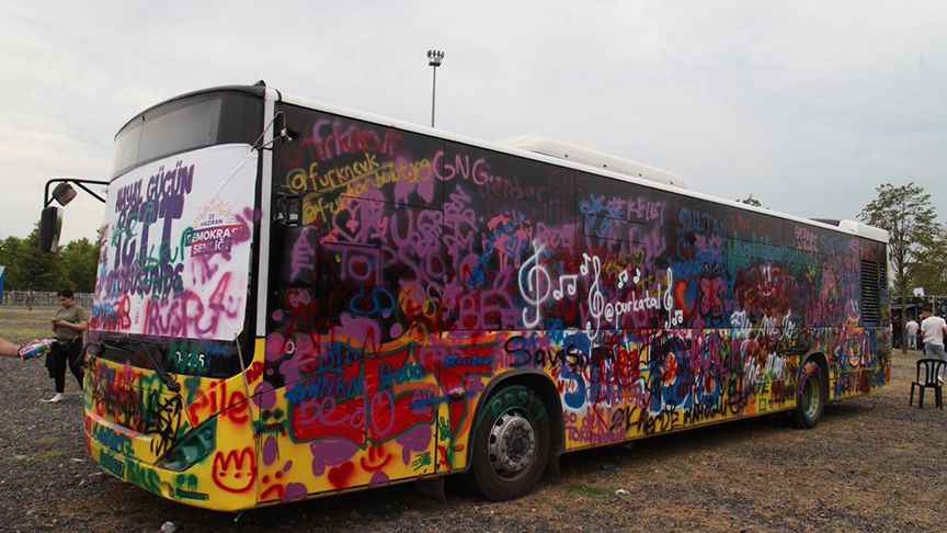 İBB Yenikapı etkinlik alanında İETT'ye ait otobüslerin ziyaretçiler tarafından sprey boyayla boyandığı bir etkinlik düzenledi.
