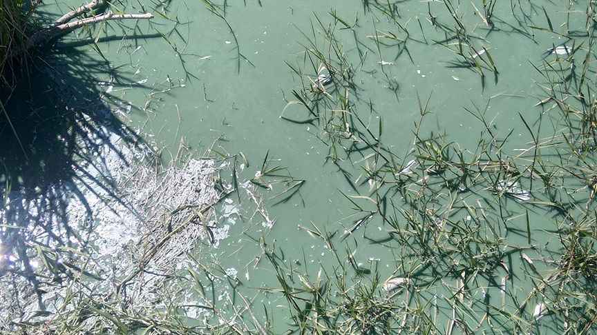 Arnavutköy'ün Sazlıbosna Mahallesi'nde bulunan Sazlıdere Barajı'ndaki renk değişikliği ve koku, balık tutmaya gelenler tarafından fark edildi.