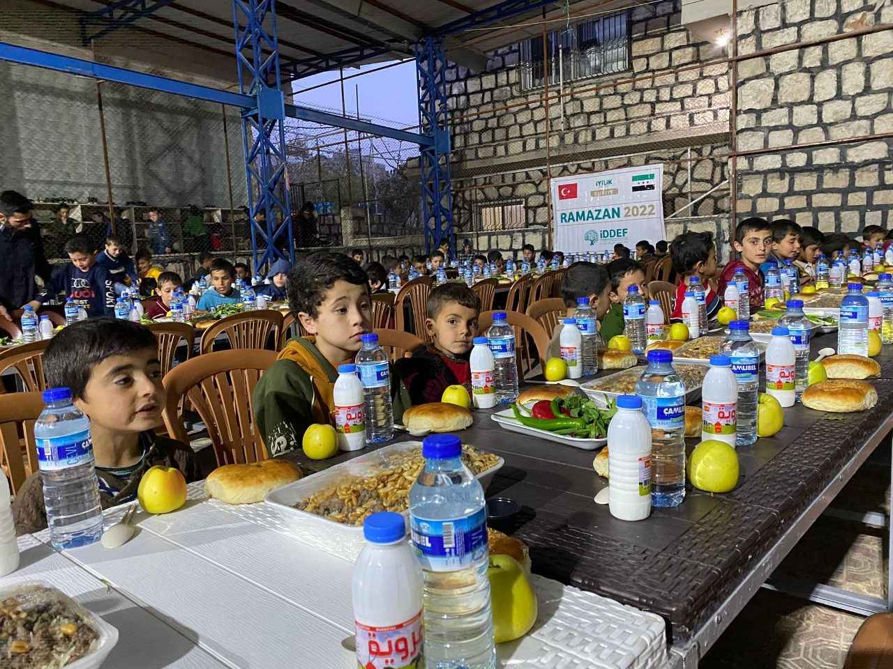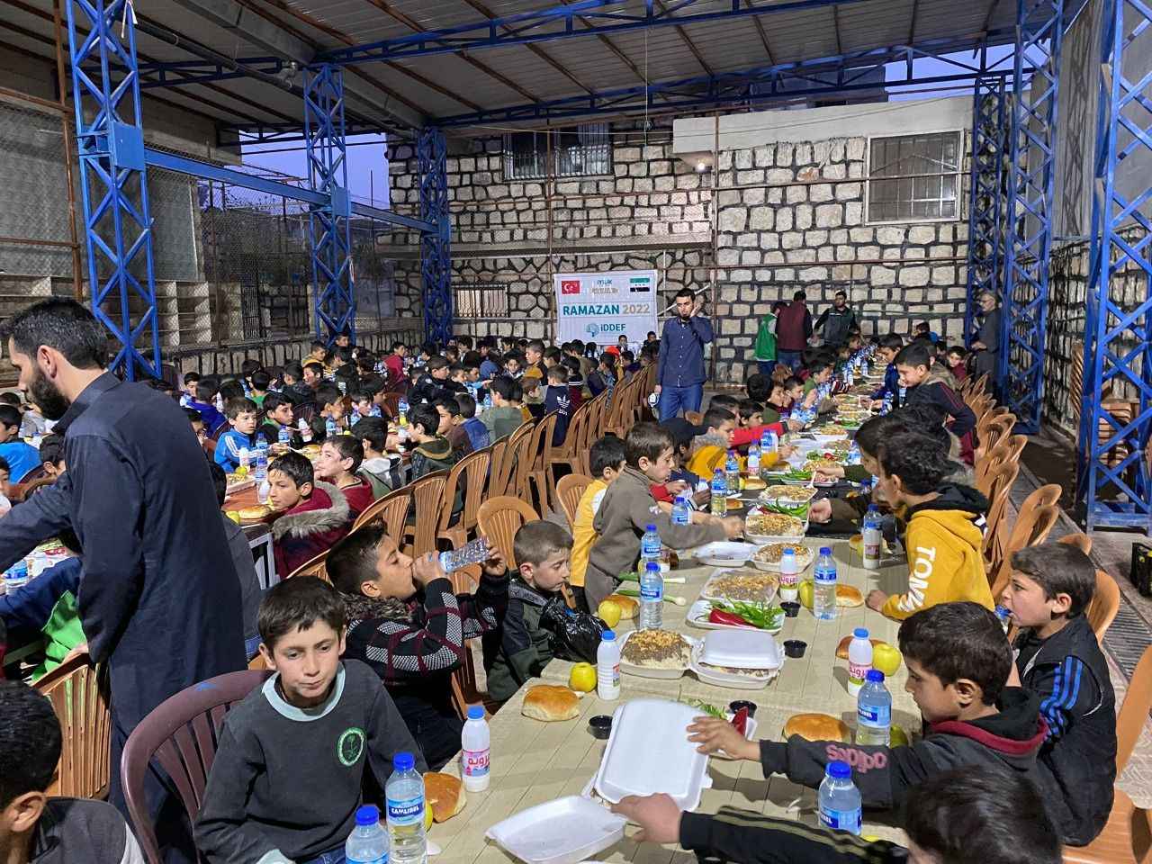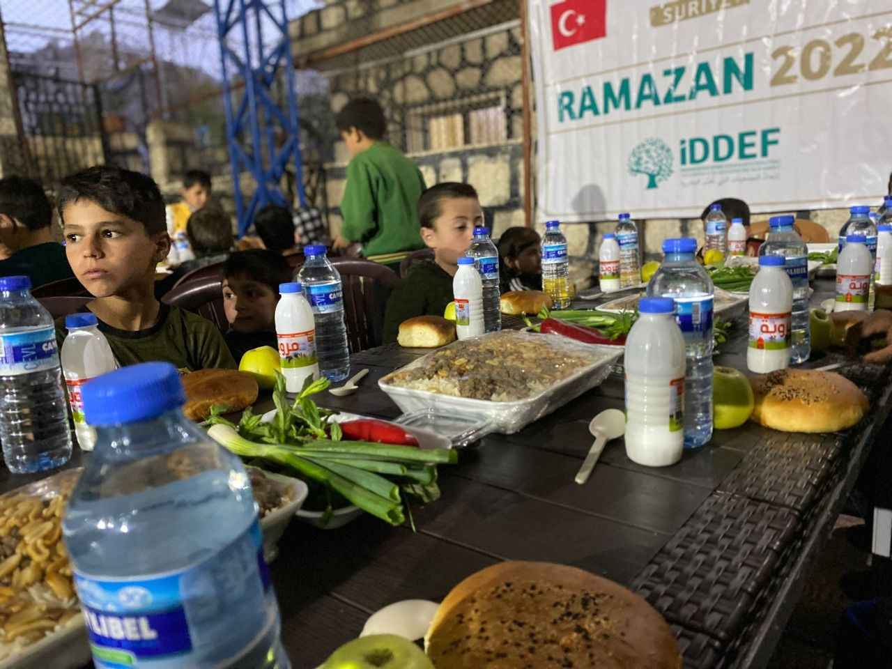 İDDEF’ten yapılan açıklamaya göre, ‘İyilik Seninle’ temasıyla gerçekleşen Ramazan 2022 çalışmaları kapsamında İdlib’deki yetimhanede barınan yetim çocuklara iftar yemeği ikram edildi. Açıklamada, “İDDEF olarak, bölgede hizmet veren aşevimizde pişirilen yemekler ile kumanyaları çadır kentte ve inşa ettiğimiz briket evlerde yaşam mücadelesi veren savaş mağduru Suriyeli sivillere dağıtmayı sürdürürken, yetim kardeşlerimizi unutmuyoruz."