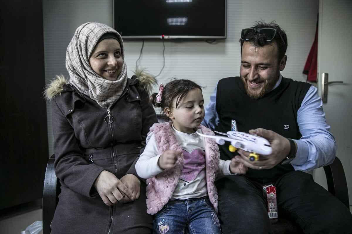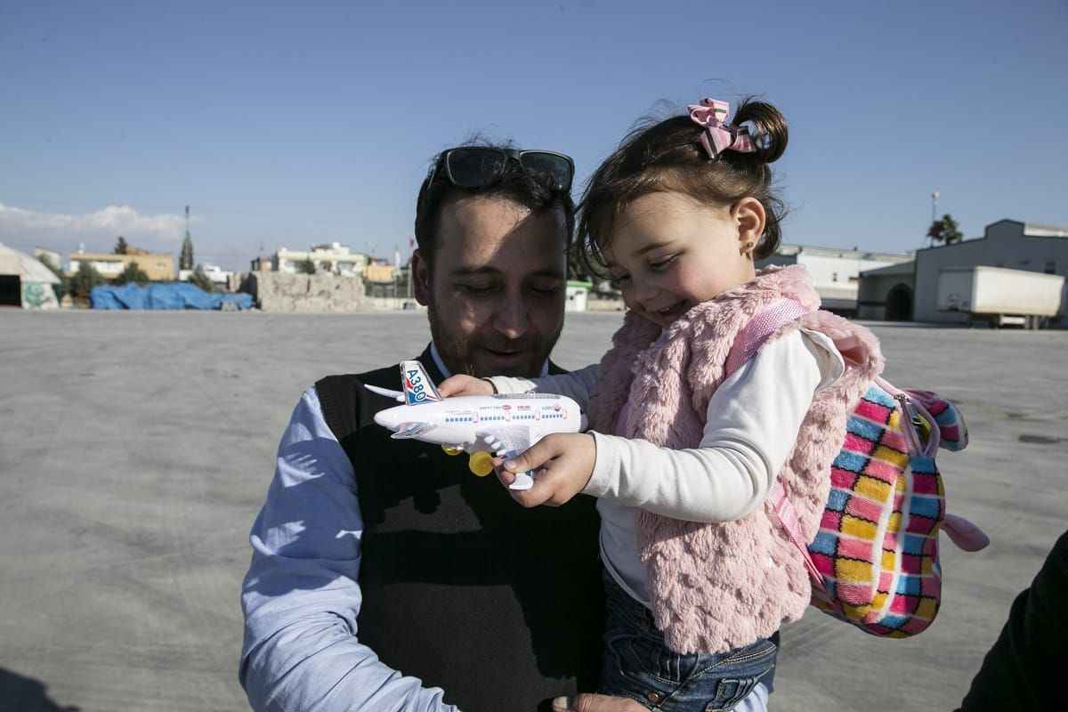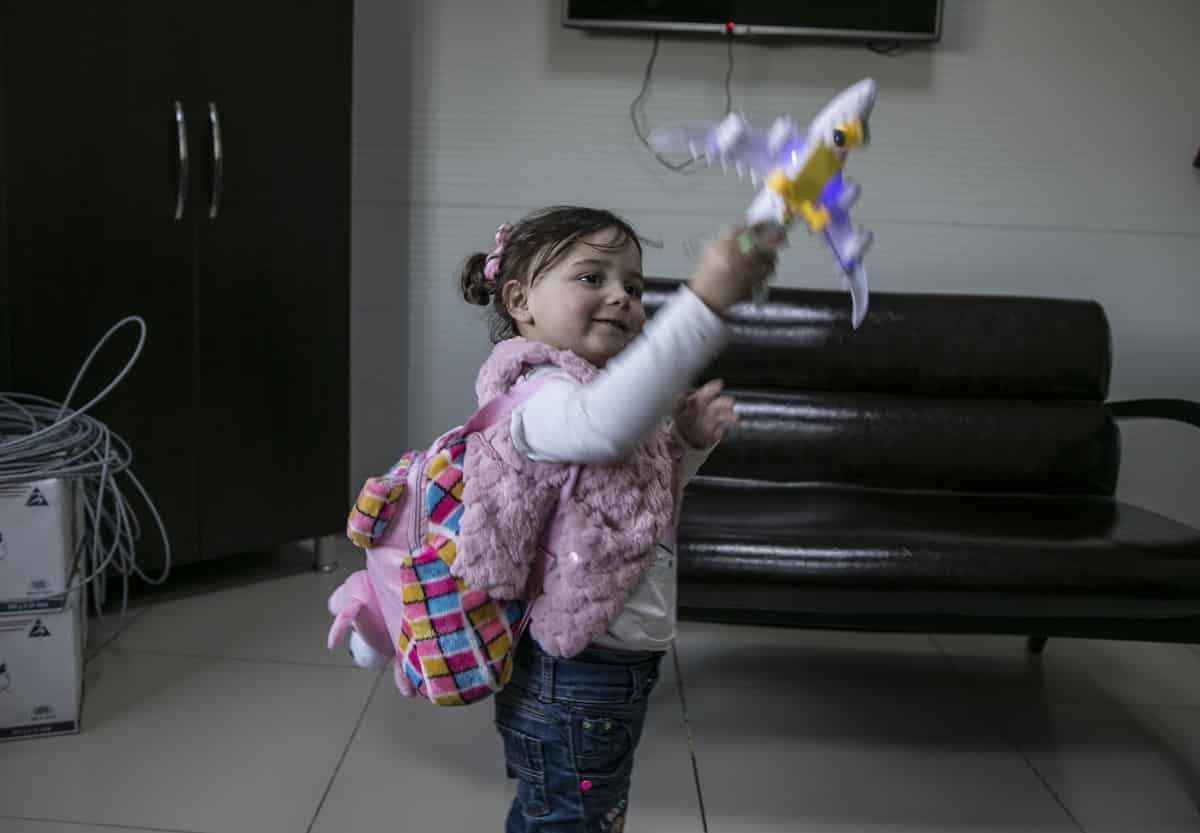 İdlib'deki bombardımanlardan korkmaması için babasının "savaş oyunu" oynattığı küçük Selva da kendisine alınan oyuncak uçakla oynadı, yiyeceklerden tattı.