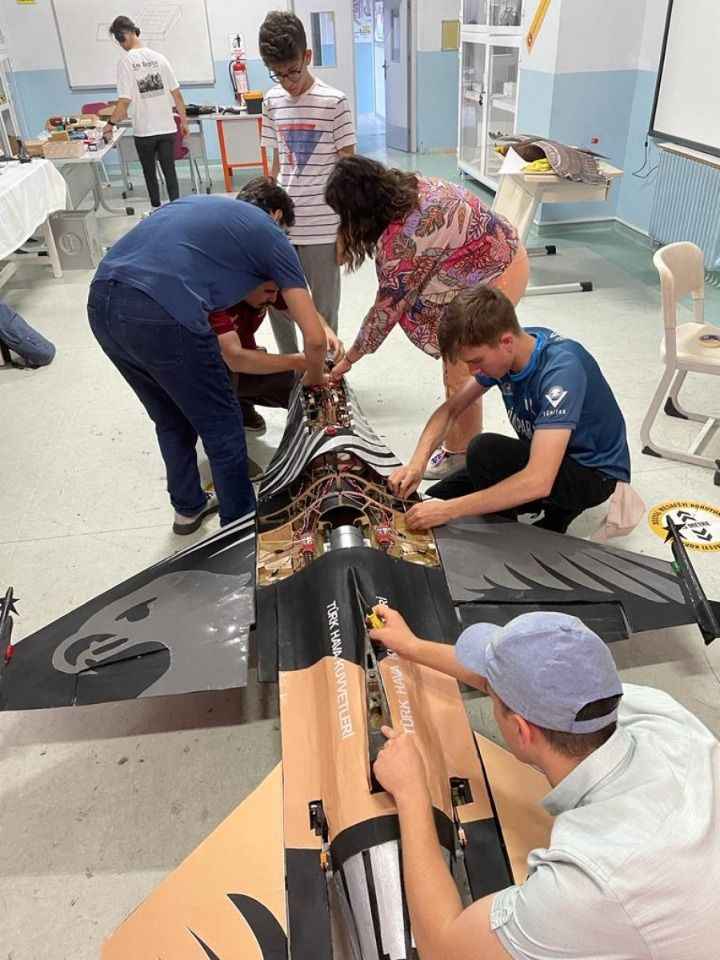 Son teknoloji makine ve ekipmanlar ile uçak teknisyenliği bölümü öğrencilerimizin yetenekleri birleşince yüzde 100 yerli İHA üretimi faaliyetleri kararlı bir biçimde sürmektedir. Gençlerimiz henüz 15-16 yaşlarında bile İHA, SİHA, drone gibi hava araçları üretebiliyor. İmkan sağlandığında Türk gençlerinin yapabileceklerinin sınırı yok, kendileriyle gurur duyuyoruz.” dedi.