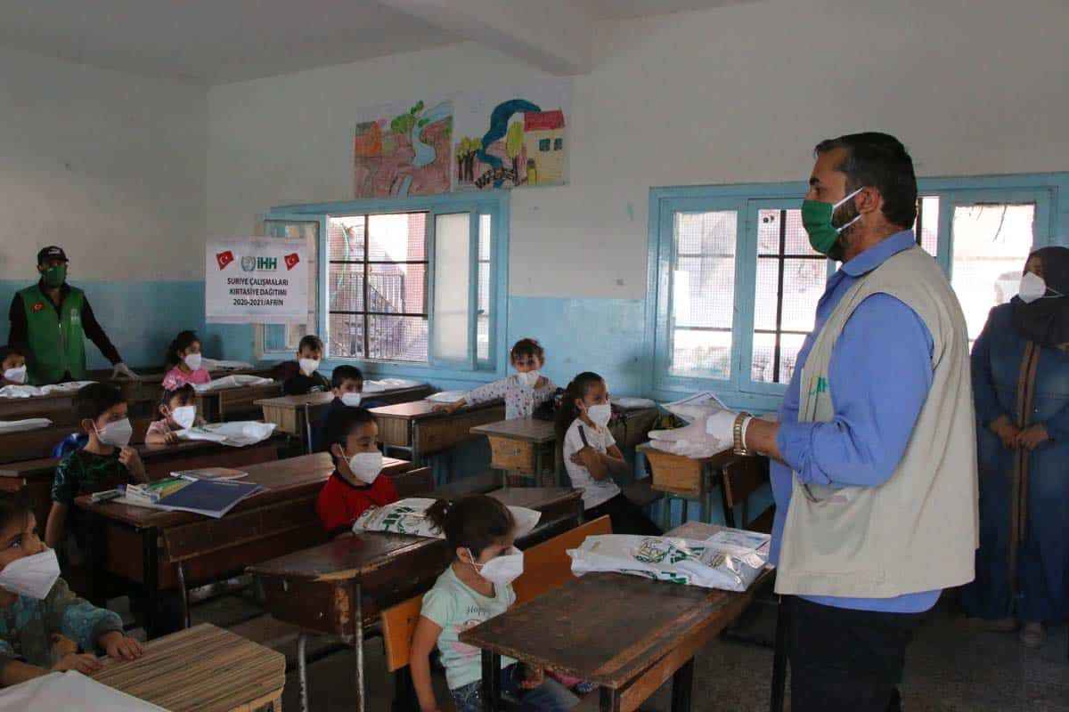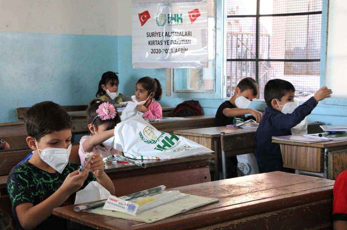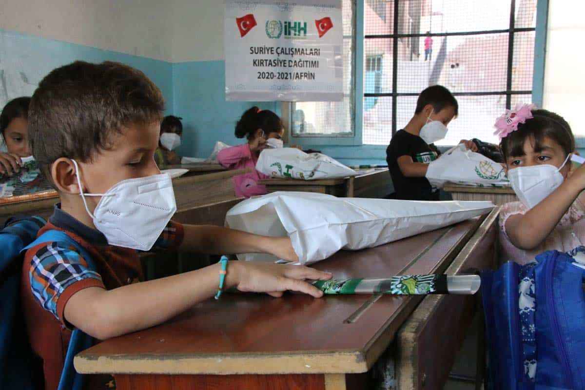 İnsan Hak ve Hürriyetleri (İHH) İnsani Yardım Vakfı, eğitimin başladığı Suriye’nin kuzeybatısındaki Afrin ilçesinde öğrenim gören 2 bin 500 öğrenciye kırtasiye seti dağıttı.