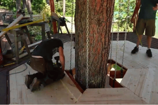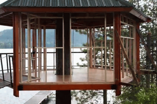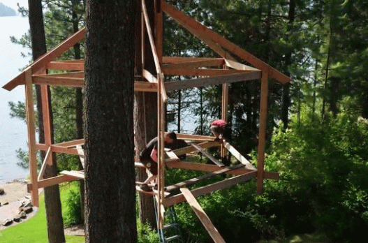 ABD'nin Idaho eyaletinin ufak bir şehri olan Sandpoint'te yaşayan iki arkadaş, bir ağacın gövdesini temel olarak kullanarak muhteşem bir ev inşa etti.
