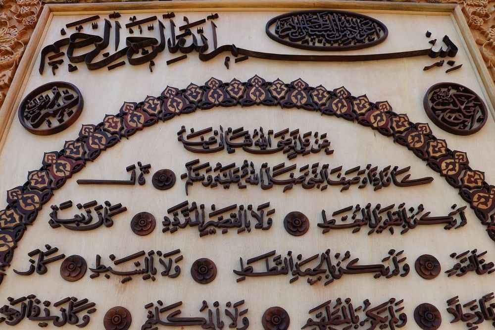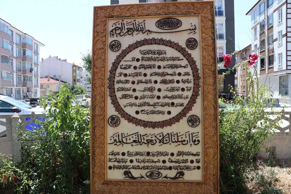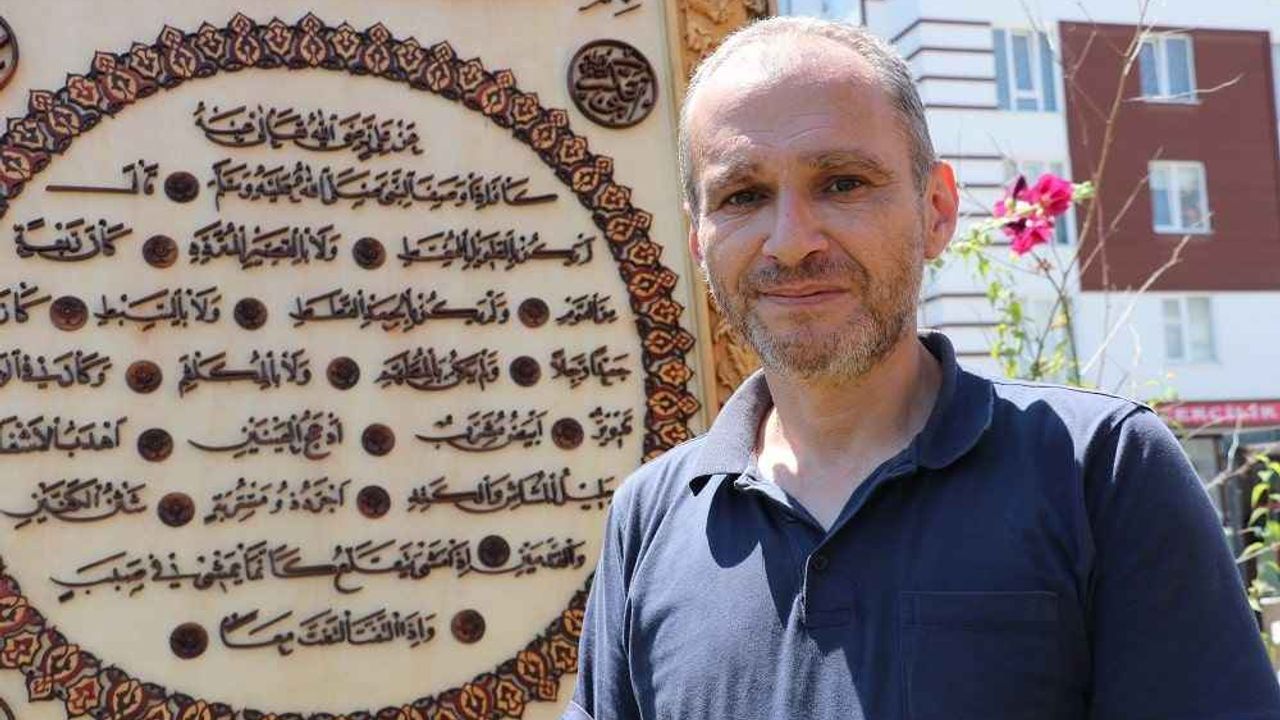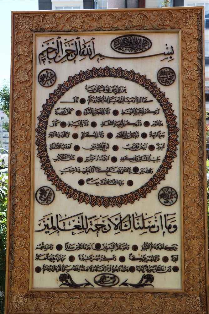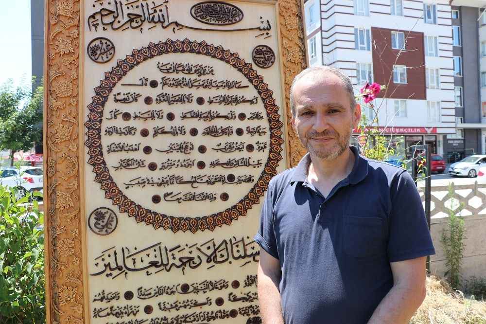 "Metnin başlangıç kısmında da zaten 'Hz Ali'den rivayet olunur ki' diye başlar. Devamında da Peygamberimizin özelliklerini anlatır. Değerli metinlerdir. Yapım tekniklerine gelecek olursak. Hilye şerifimiz 2 yılda tamamlandı. 2017'de başladık yapmaya 2019'un başında da hazır oldu. Ebatı 2,5 metreye 1 metre 60 santimdir. Yapım tekniği olarak oyma, kıl testere ile ahşap kesim ve farklı ağaçlarını iç içe geçmesinden oluşan katma tekniği mevcuttur. Kenar çerçevesi hatai motiflerde denilen Selçuklu ve Osmanlı motiflerinden oluşmaktadır. Farklı farklı ağaçlar kullanılmıştır." dedi.