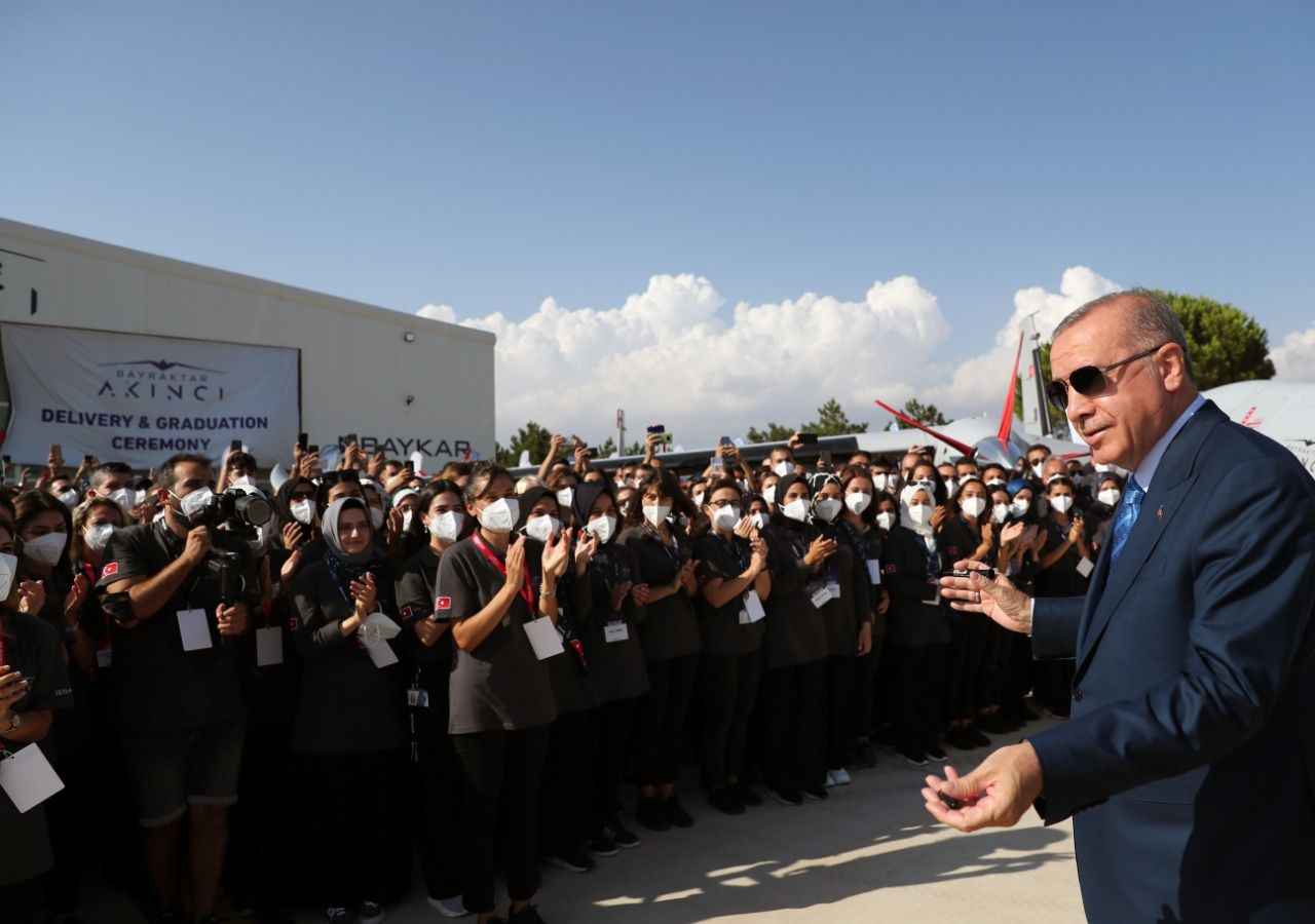 Cumhurbaşkanı Recep Tayyip Erdoğan, Çorlu Hava Meydan Komutanlığı Akıncı Uçuş Eğitim ve Test Merkezi'nde, Bayraktar Akıncı Taarruzi İnsansız Hava Aracı (TİHA) Teslimat ve Kurs Bitirme Törenine katıldı. Törende, Baykar Teknik Müdürü Selçuk Bayraktar ve Baykar Genel Müdürü Haluk Bayraktar da yer aldı.