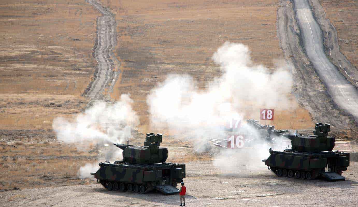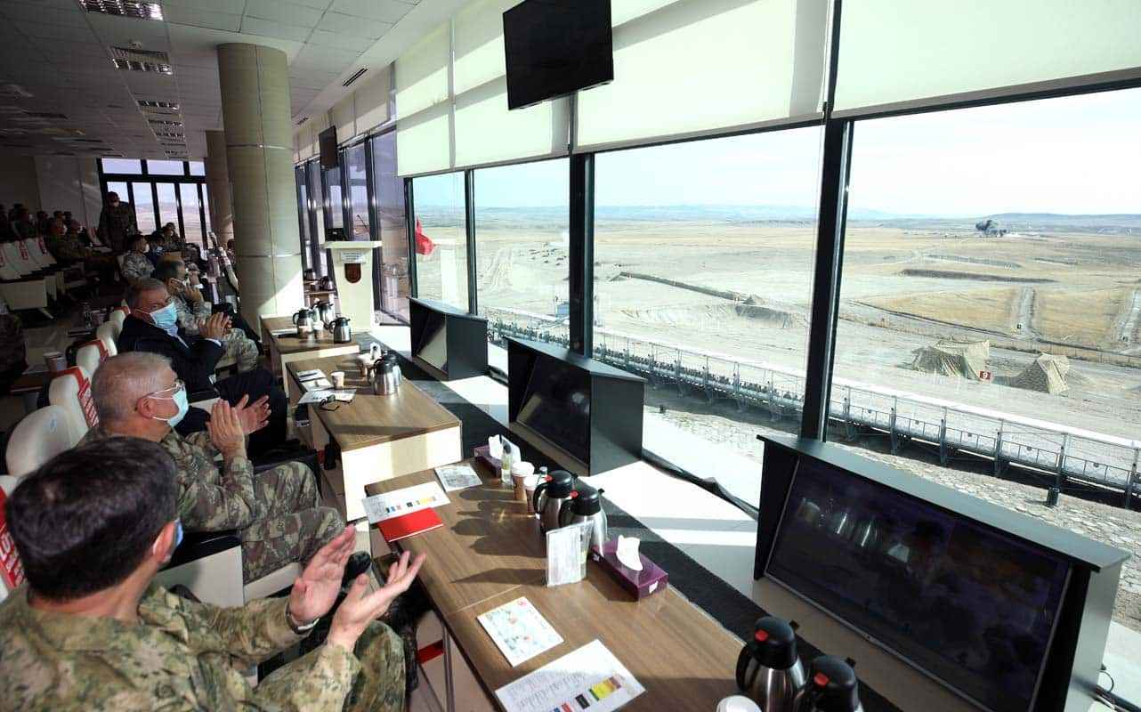 Yaklaşık 4 bin 500 metredeki hedefe yapılan etkili Kornet-E atışlarının ardından yerli ve milli üretim Korkut Kundağı Motorlu Namlulu Alçak İrtifa Hava Savunma Silah Sistemi atışları gerçekleştirildi.