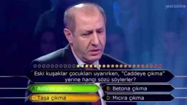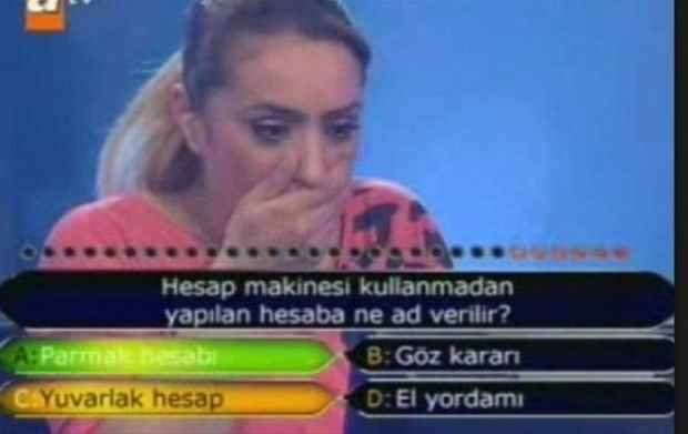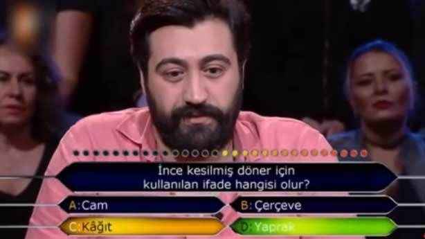 İddialı bir giriş yapan yarışmacı “yaprak döner” deyimini unutmuş sanırım. Mutfakla da ilgiliymiş ama doğru cevabı veremedi. C Kağıt dedi lakin doğrusu D Yaprak olacaktı. Döner olsa da yesek bu arada…