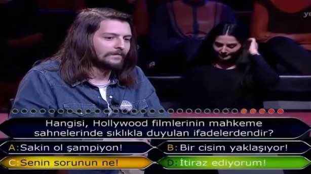 Evet, filmlerde sıklıkla bu cümleye denk geliyoruz ancak burada sorulan soru mahkemede geçen bir cümle. Dikkatsizliğinin kurbanı olmuş yarışmacı. "Sayın yargııııç! İtiraaaaz ediyorum!" diyerek ağzını yaya yaya söyler taraflardan birisi filmlerde.