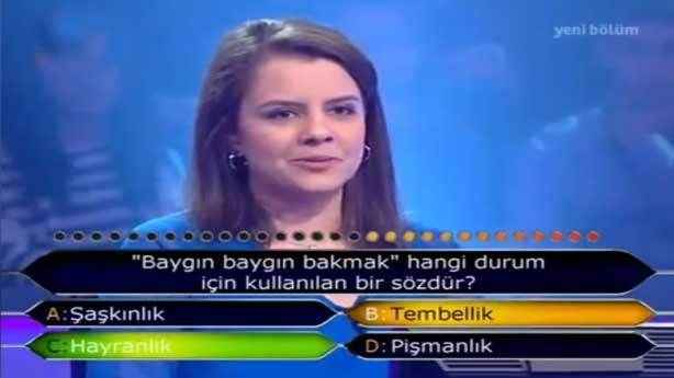Heyecandan soruyu bilemeyince “Seyirciye sorma joker”ini kullanan yarışmacı seyirci kurbanı oldu. “Pireler berber iken, develer tellal iken” cümlesini karıştıran seyirciler yarışmacıyı yanlış yönlendirdiler.