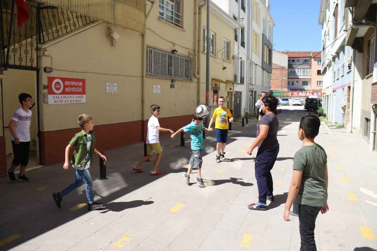 Yıldız ve Ural, derslerde dua ve surelerin ezberlenmesi, Kur’an-ı Kerim okuma ile temel dini bilgilerin kazanımına yönelik eğitimler verirken, ders aralarında ise caminin yanındaki sokakta öğrencileriyle futbol oynuyor.