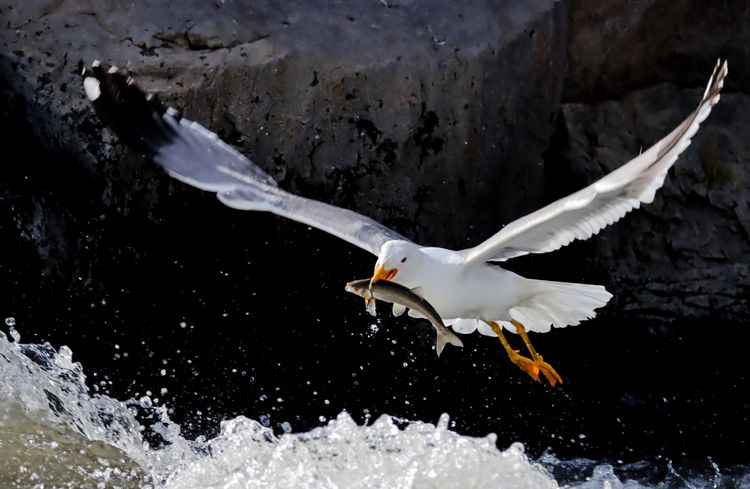 Bölgedeki martılar da göç boyunca tatlı sulardaki balıkları avlayarak besleniyor.