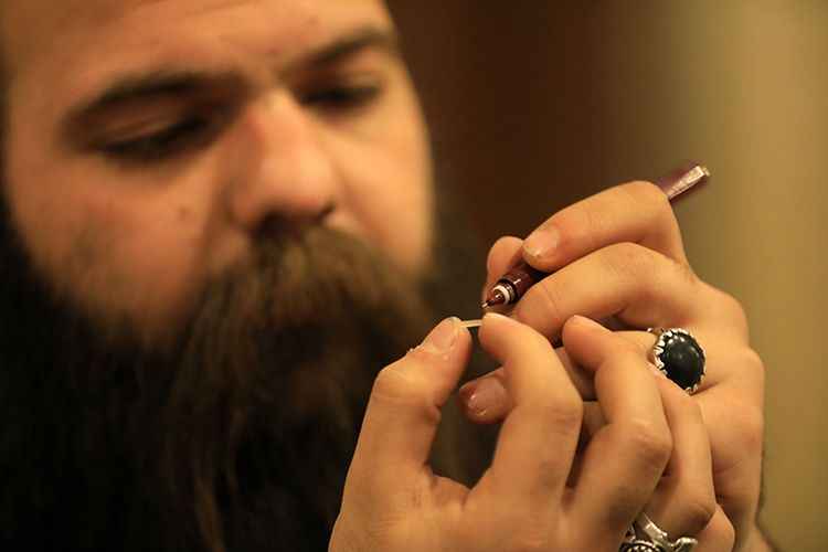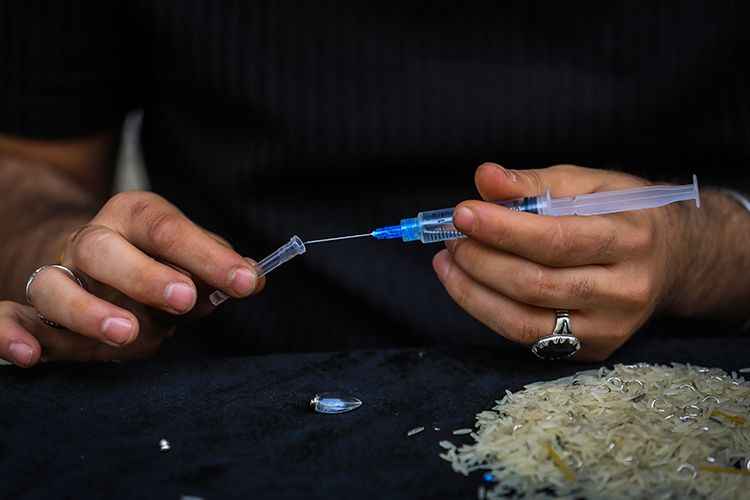 Başkent Bağdat'ın sahaflar sokağı olan Mutenebbi'de küçük bir tezgahta çalışan 25 yaşındaki Rıza, pirinç tanelerinin üzerine müşterilerden gelen taleplere göre isim yazıyor. Hattat olan Rıza, pirinç tanelerine çeşitli çizimler de sığdırıyor.