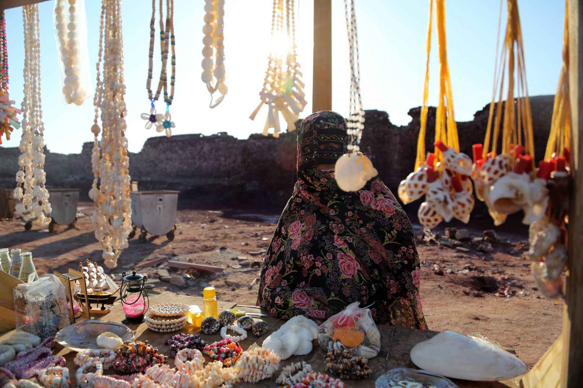 İran'ın liman kenti Bandar Abbas'a bağlı Hürmüz adasındaki maskeli kadınlar, kendi el işleri ve hatıra ürünleri satarak geçimlerini sağlıyor. Basra Körfezi'nde bulunan adada yaşayan kadınlar, tesettürlerini "Burka" adı verilen farklı renk ve desenli özel yüz maskesiyle pekiştiriyor.