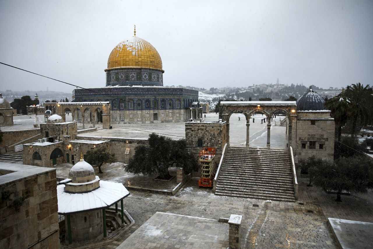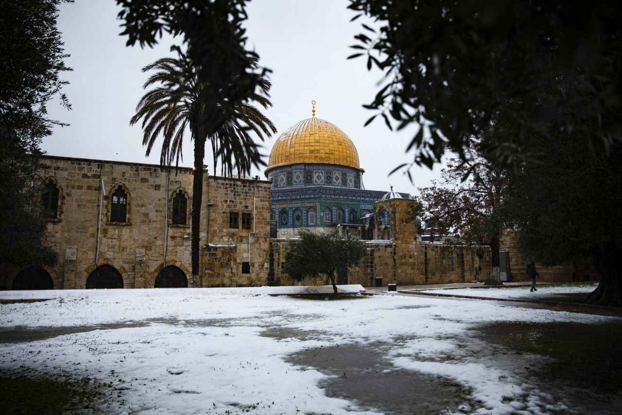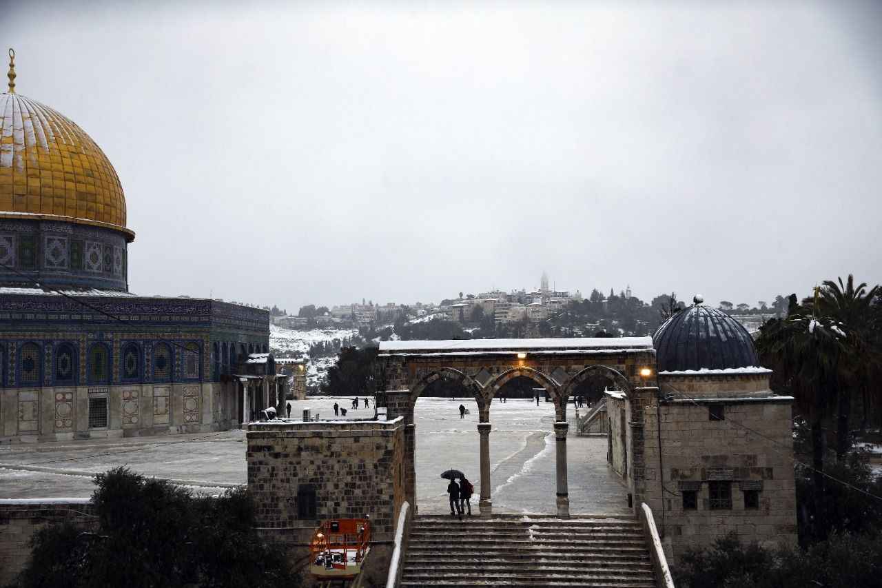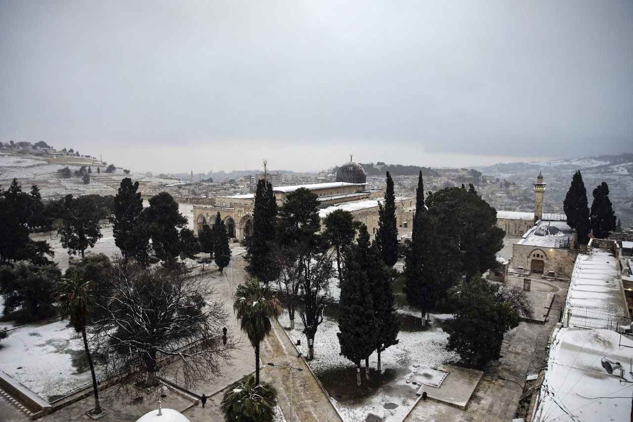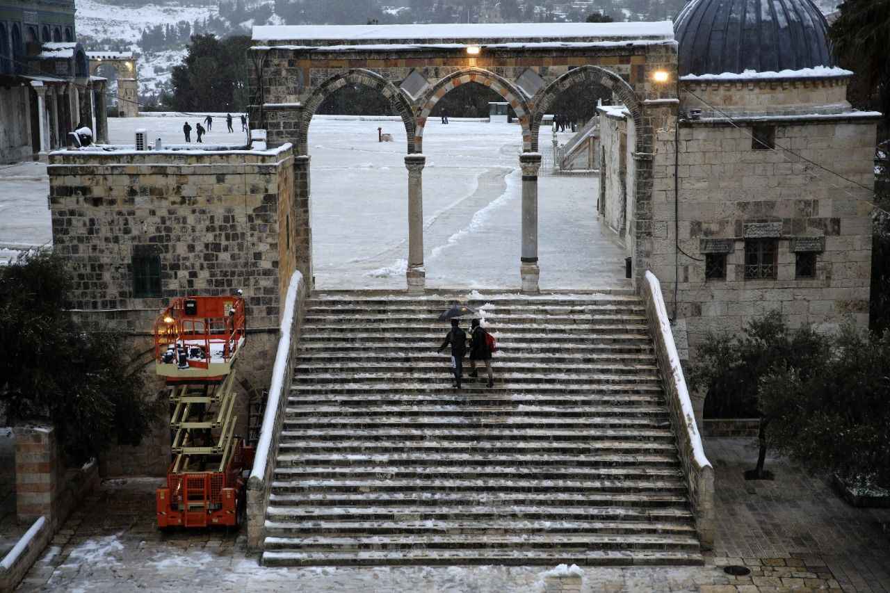 Öğleden sonra etkili olmaya başlayan kar yağışı, akşam saatlerinde işgal altındaki Doğu Kudüs'ü beyaza bürüdü.