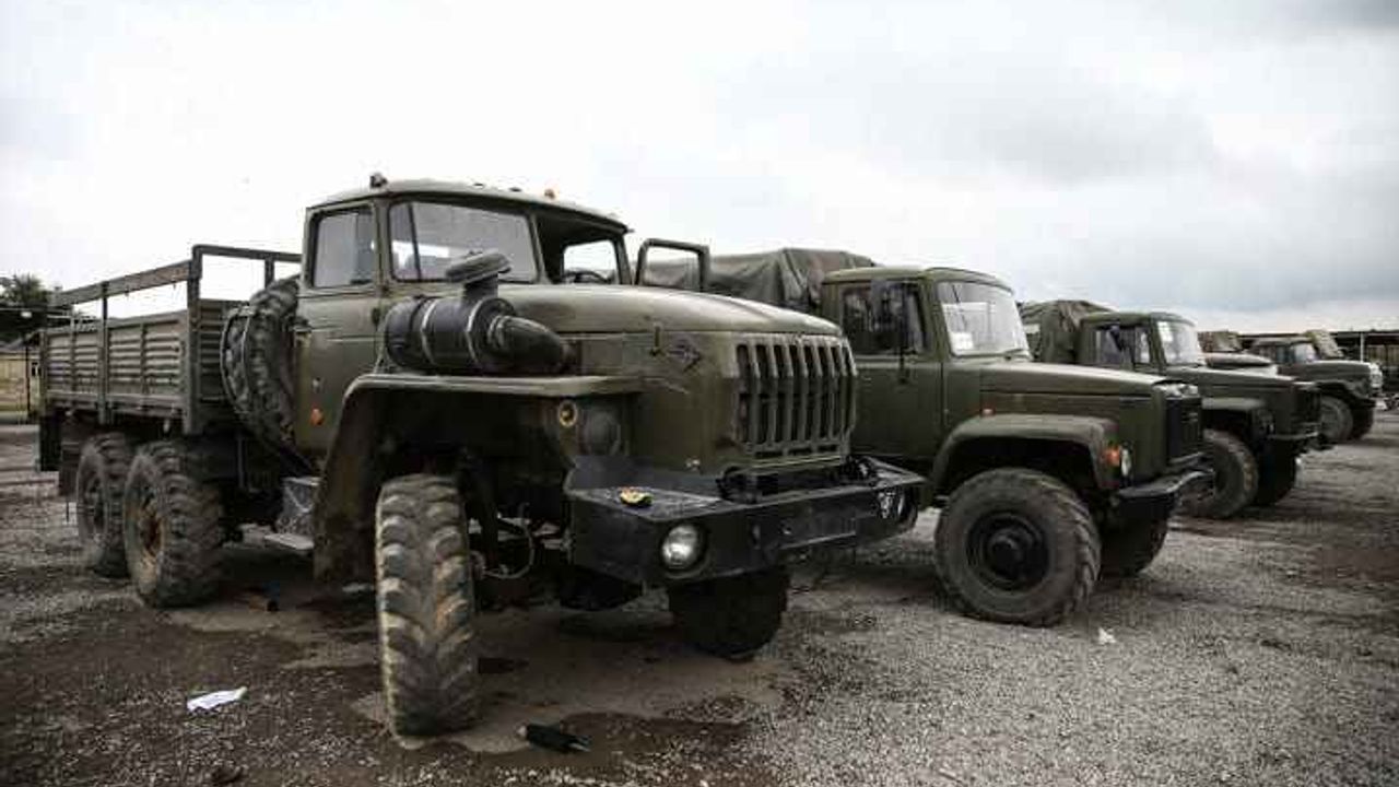 Ermenistan ordusuna ait Rus yapımı personel ve yük taşıyıcı araçlar, Azerbaycan'ın Yevlah kentindeki bir askeri üsse getirildi.