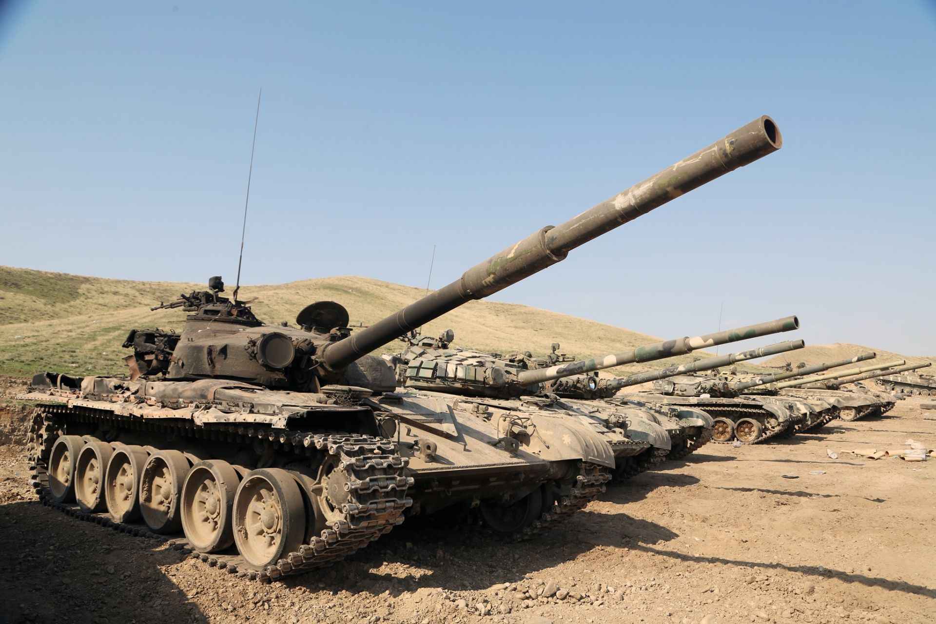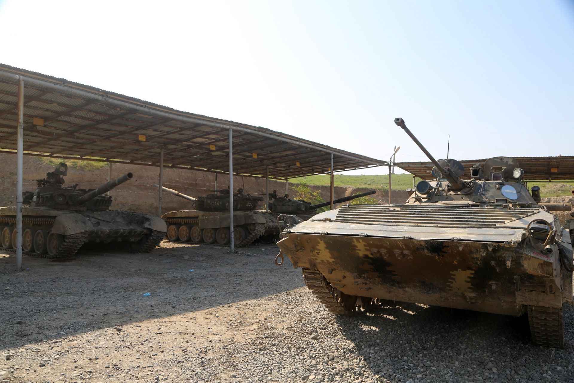 Azerbaycan ordusu tarafından ele geçirilen Ermenistan'a ait askeri araçların bir kısmını kameralara yansıdı.